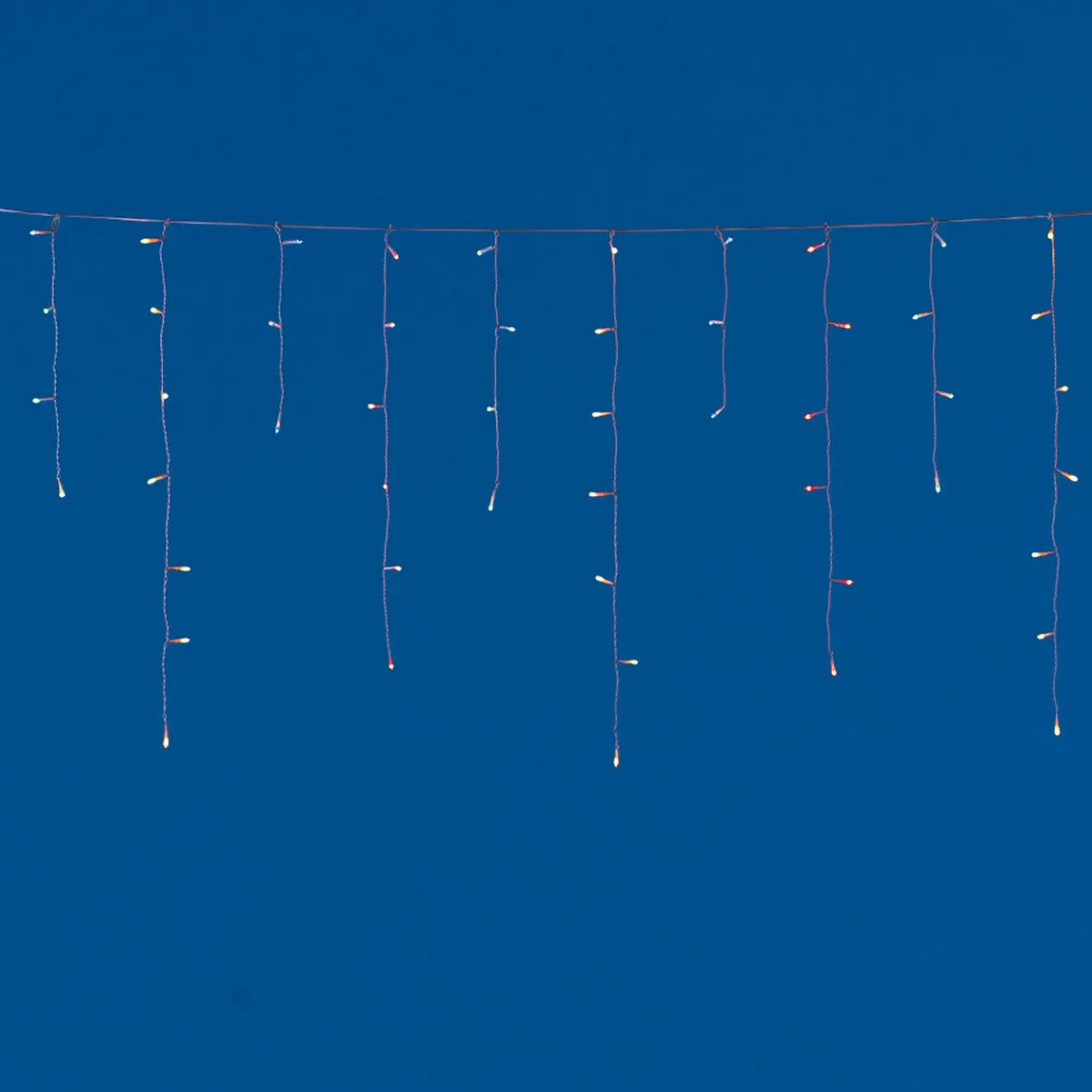 Bordure de toit lumineuse, usage extérieur et intérieur, 100 lucioles multicolores clignotantes, 2.4 m d’éclairage, 20 descentes jusqu’à 60 cm, L. câble 5 m..