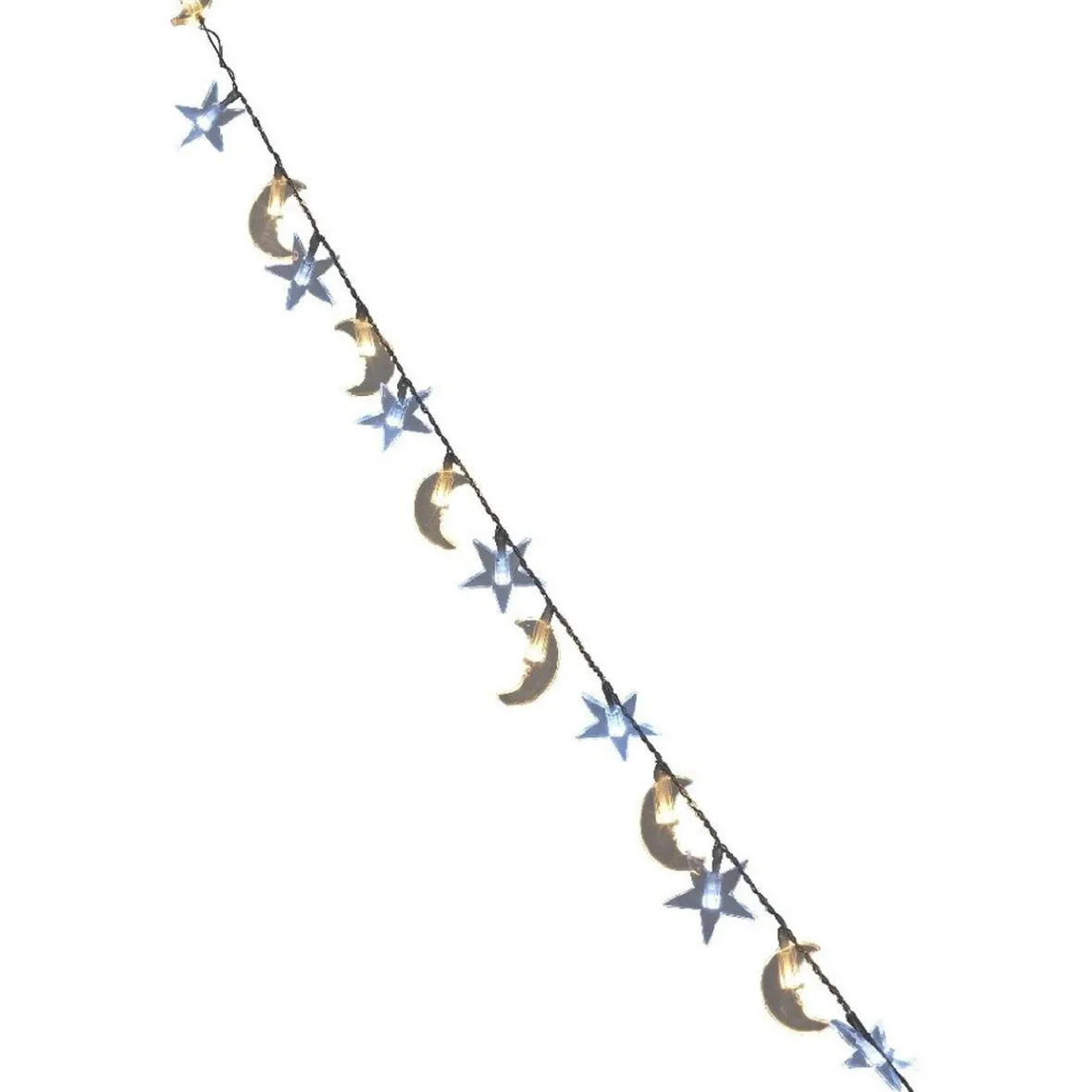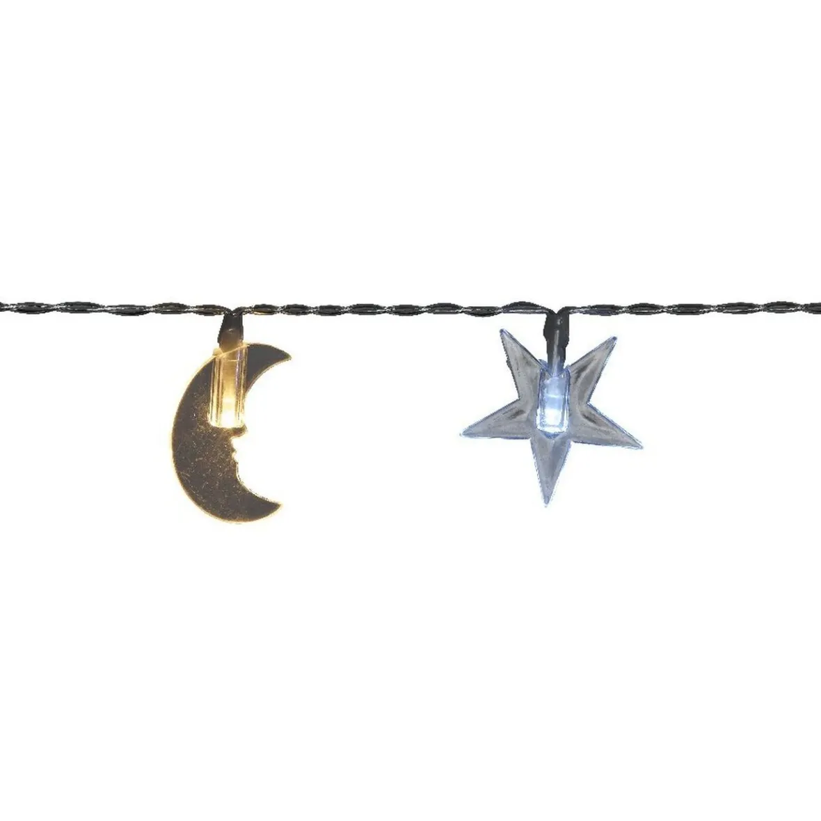 Guirlande électrique étoiles et lunes transparentes, 1 m d’éclairage, 14 leds blanches fixes.