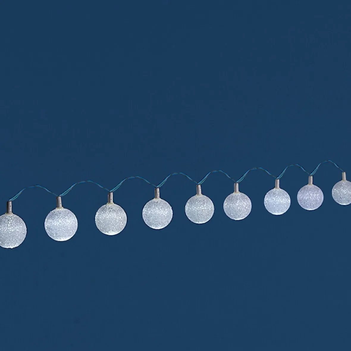 Guirlande électique solaire boules blanches, 5.7 m d’éclairage, 9 leds blanches, usage extérieur. L. câble 1,6 m..