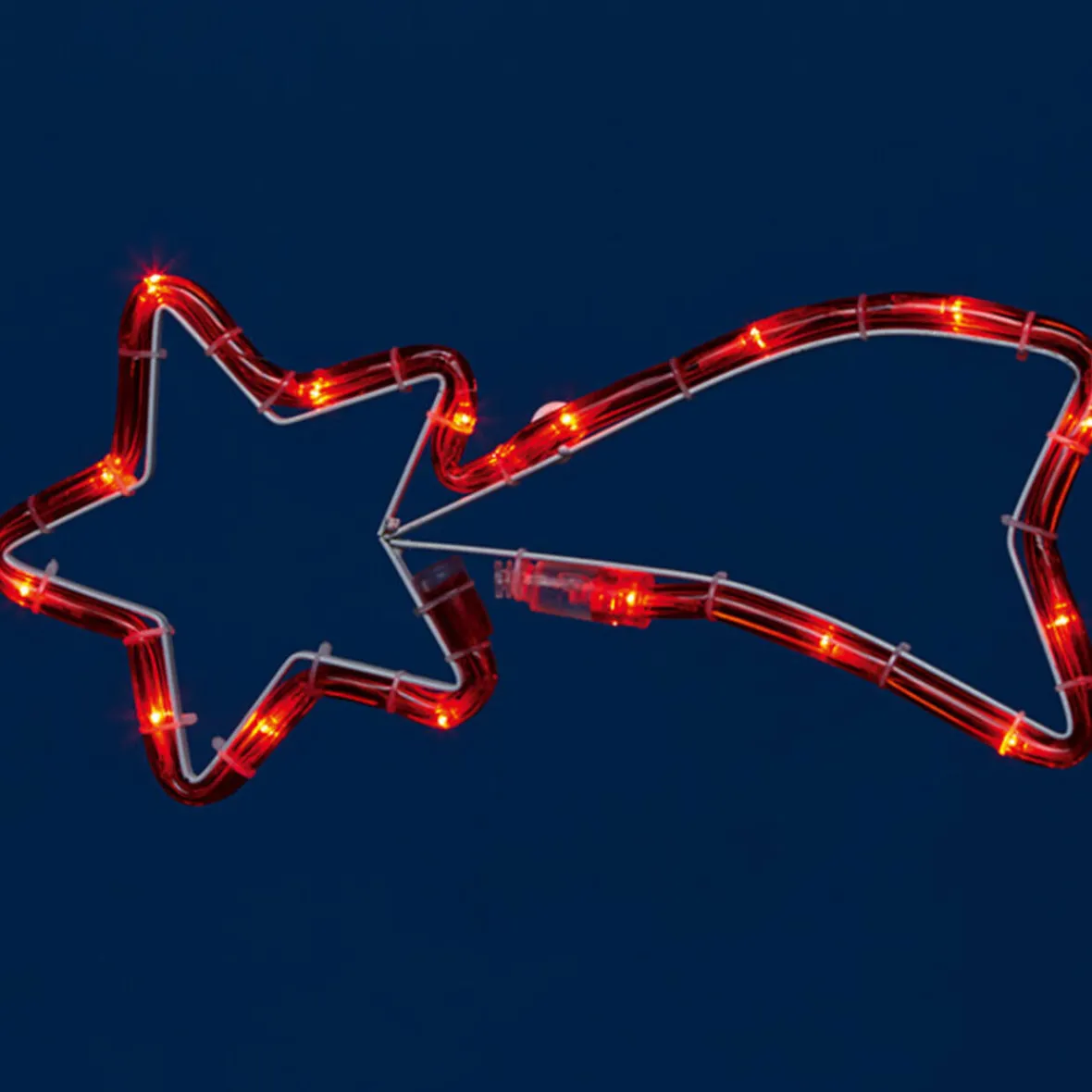 Guirlande électrique solaire tube étoile filante, 16 leds rouges fixes, dim. L.35 x h.17 cm. Usage extérieur, L. câble 1 m..