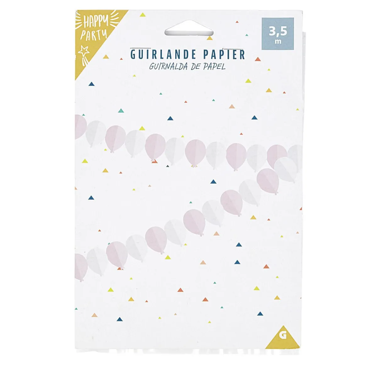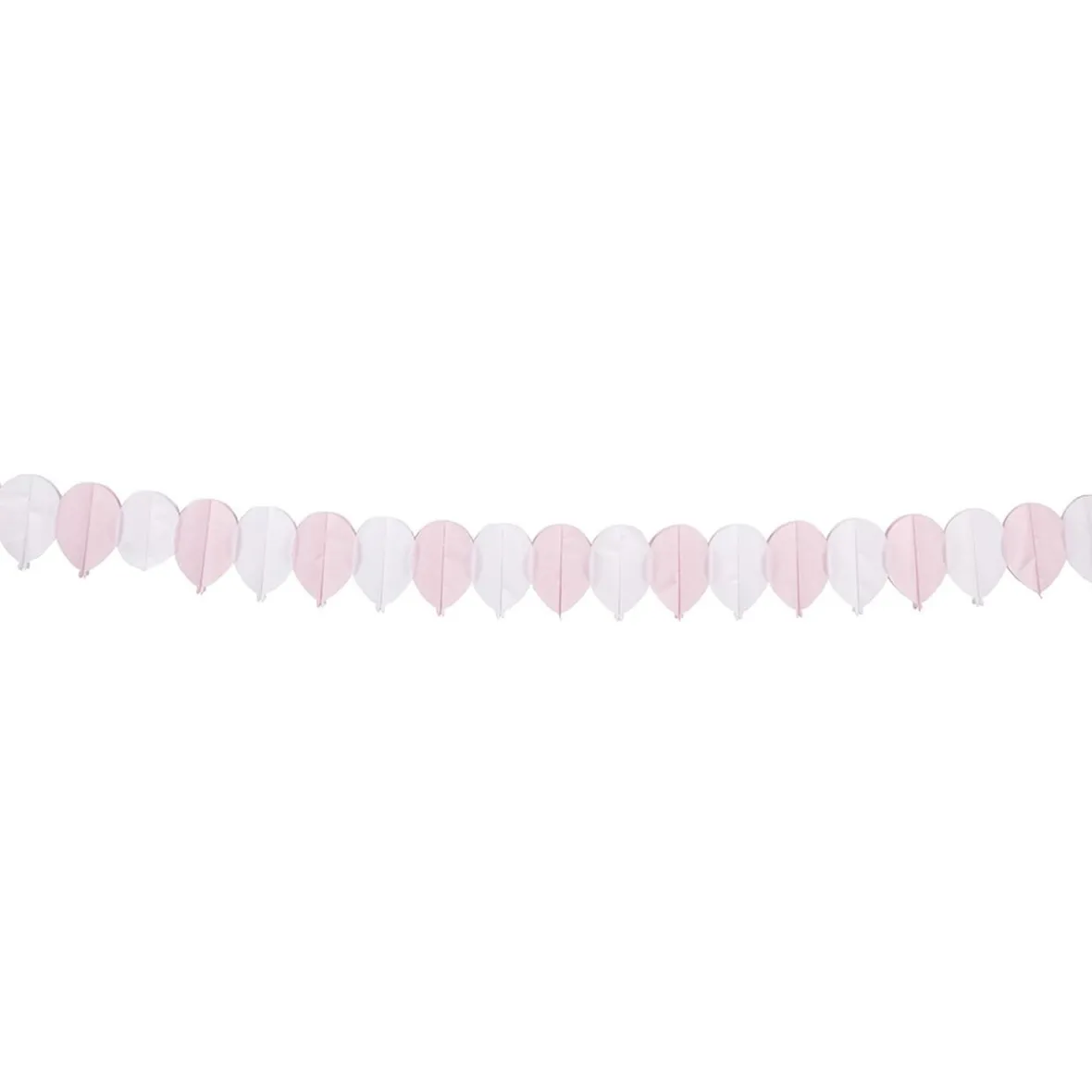 Décorez vos soirées avec cette jolie guirlande en papier en forme de ballons de couleur rose et blanc.