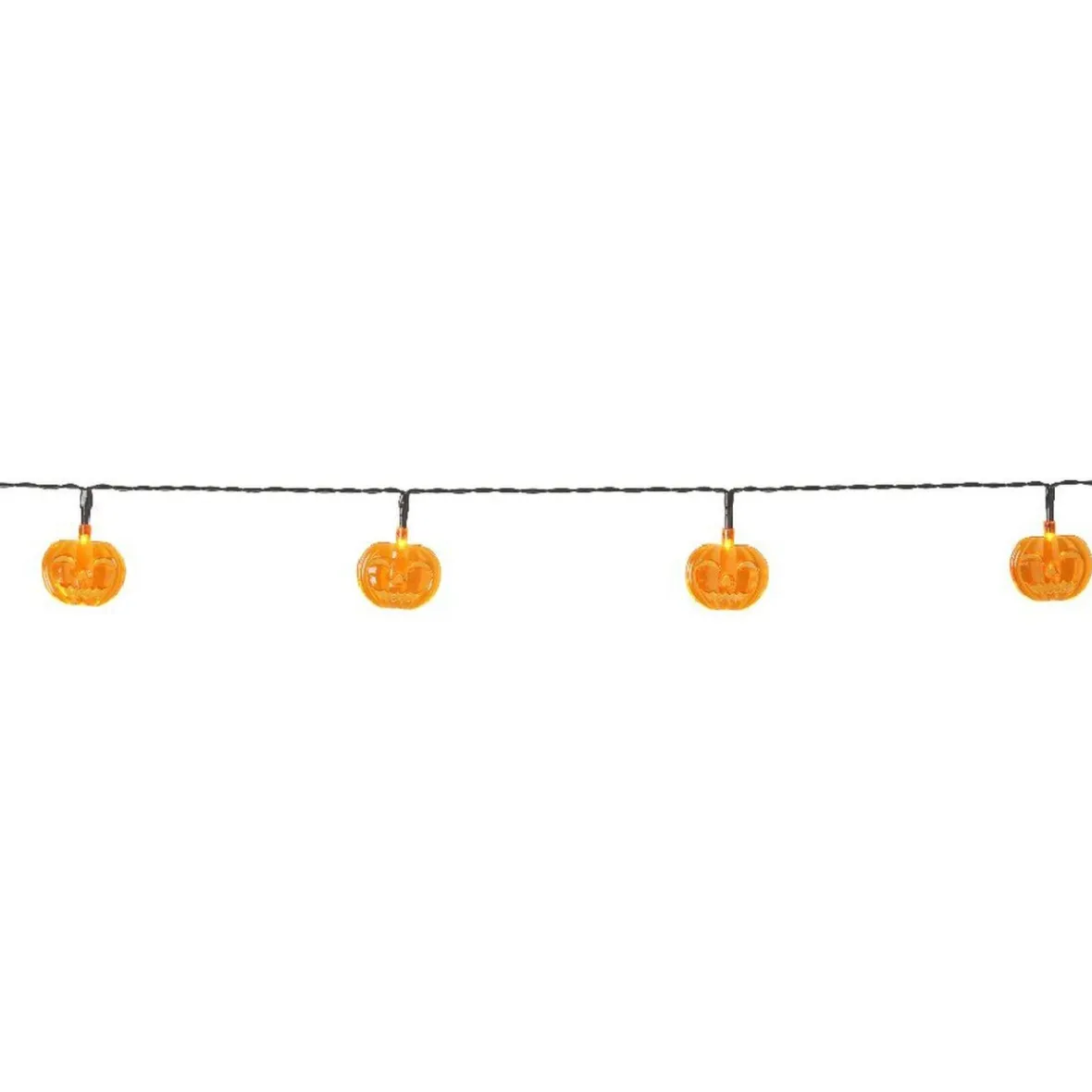 Guirlande lumineuse de citrouilles de couleur orange, araignées vertes ou chauve-souris violettes. Disponibilité des coloris selon stock en magasin.