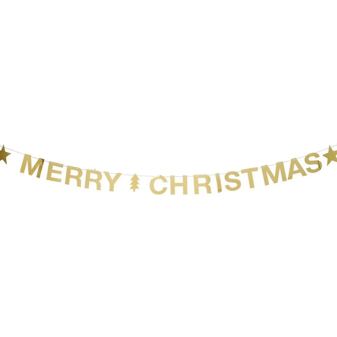 Ajoutez la touche finale à votre décoration de fêtes de fin d’année avec cette guirlande dorée inscription « Merry Christmas ».