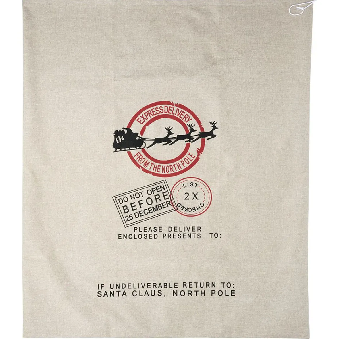 Grande hotte de Père Noël en lin pour cacher les cadeaux le soir du réveillon.