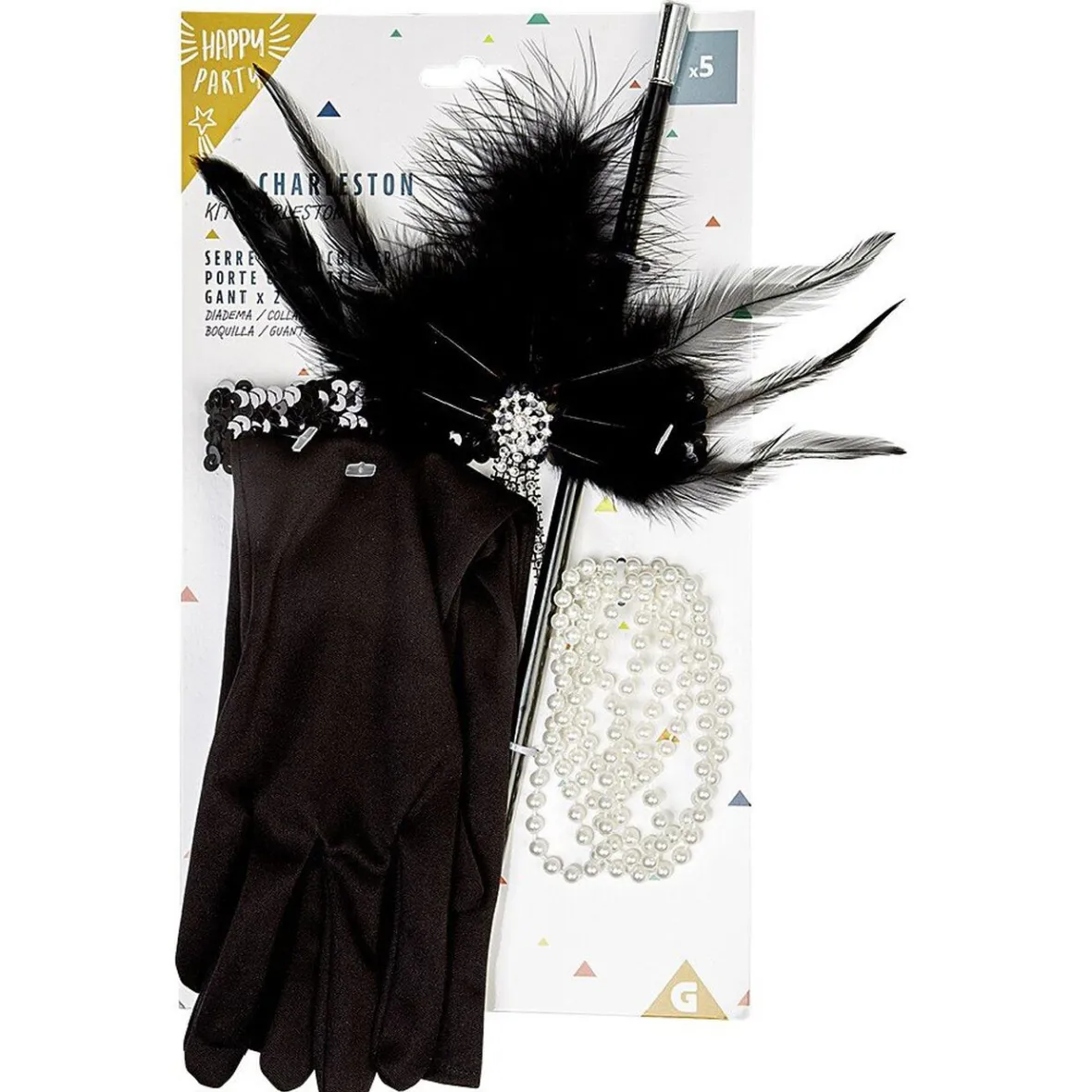 Soyez la reine du Charleston avec ce kit de 4 accessoires comprenant un bandeau, un collier, un porte cigarette et une paire de gant.