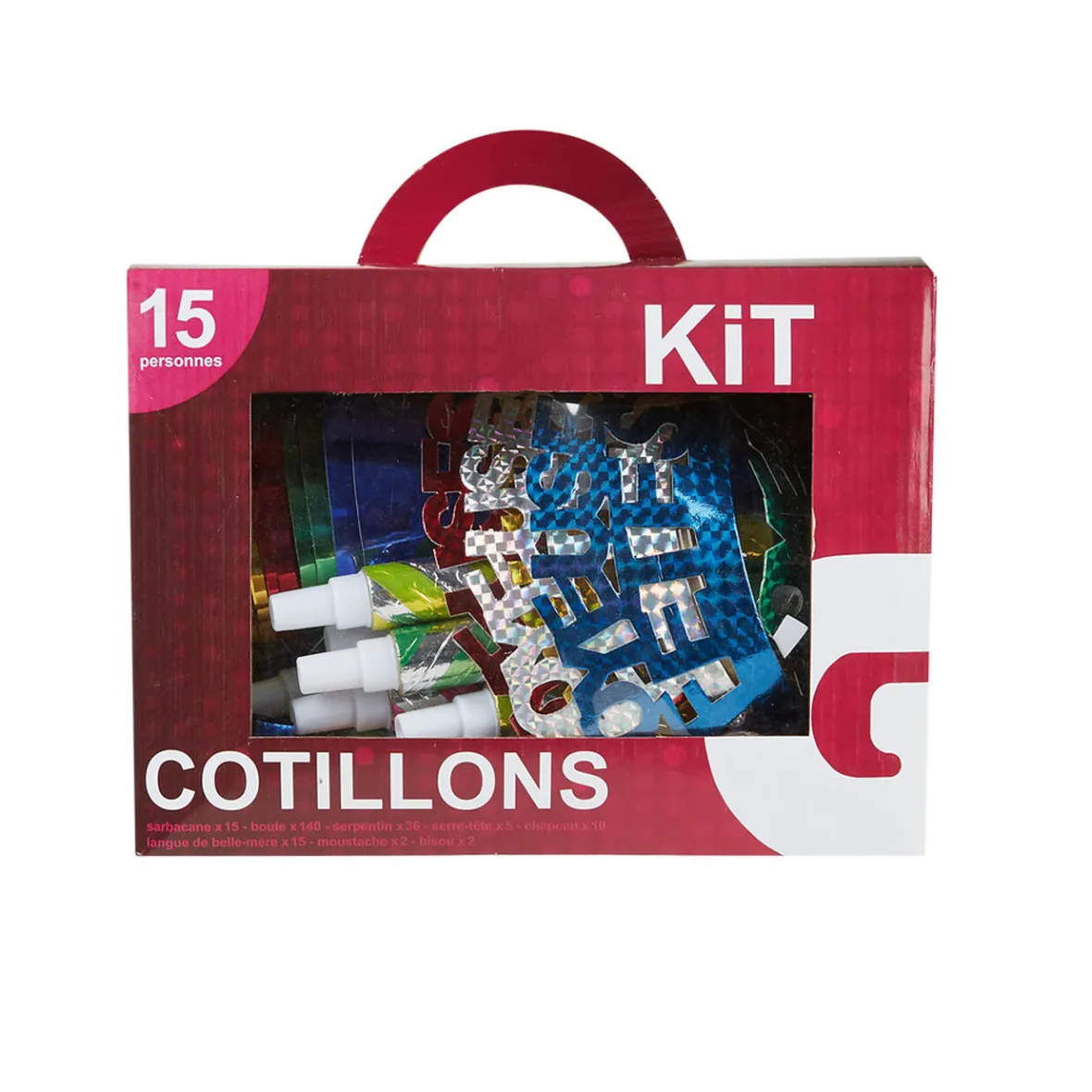 Kit de cotillons pour 15 personnes comprenant 100 pièces :