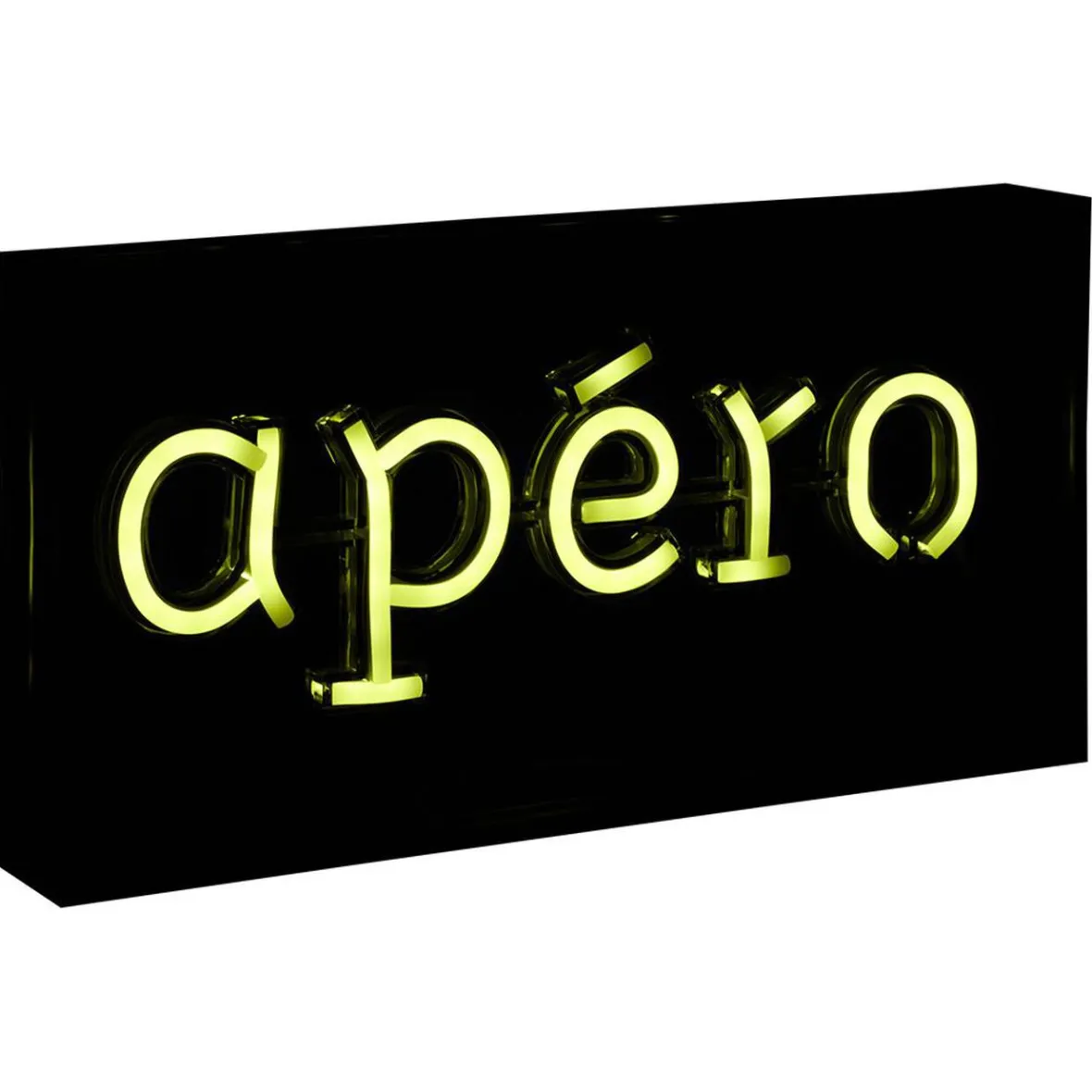 Apportez une jolie touche pop-art à l’éclairage de votre intérieur avec cette lampe néon affichant « apéro » en lettres lumineuses jaunes.