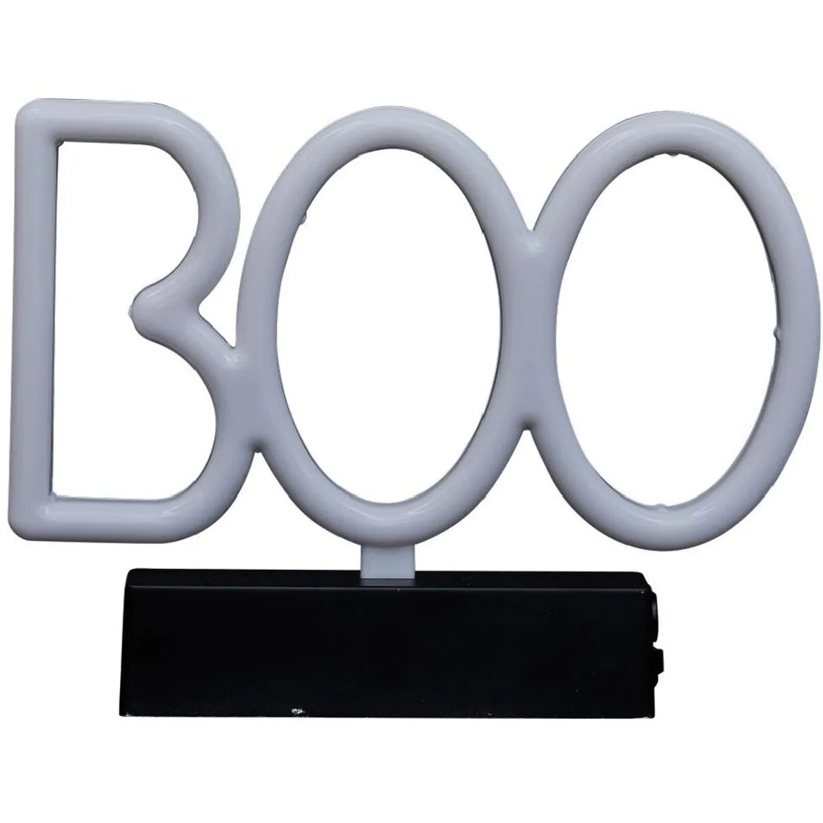 Cette lampe néon avec le mot « BOO » bicolore rose et bleu est idéale pour compléter votre décoration d’Halloween et y apporter une touche lumineuse.