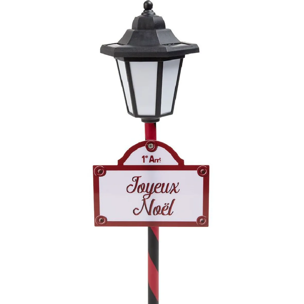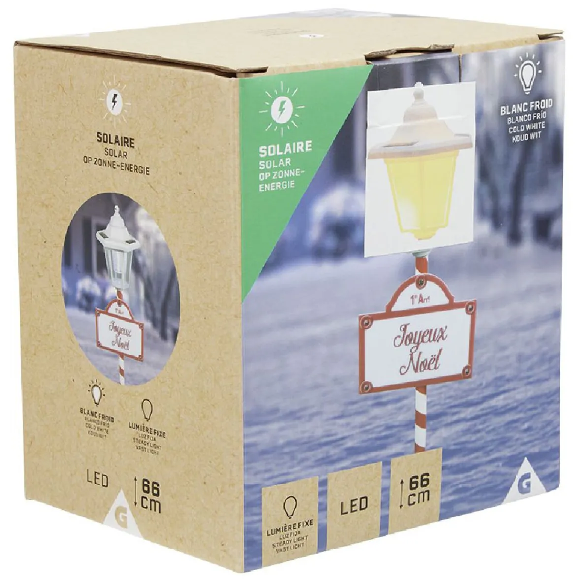 Lanterne solaire avec effet flamme vascillante et panneau « Joyeux Noël »à planter dans votre jardin pour décorer votre extérieur en période de Noël..