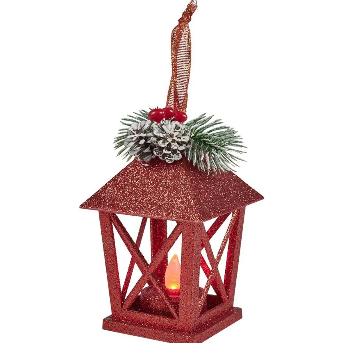 Lanterne à paillette rouge, dorée ou argentée avec LED lumineuse multicolore, à poser chez soi pour décorer sa maison en période de Noël.