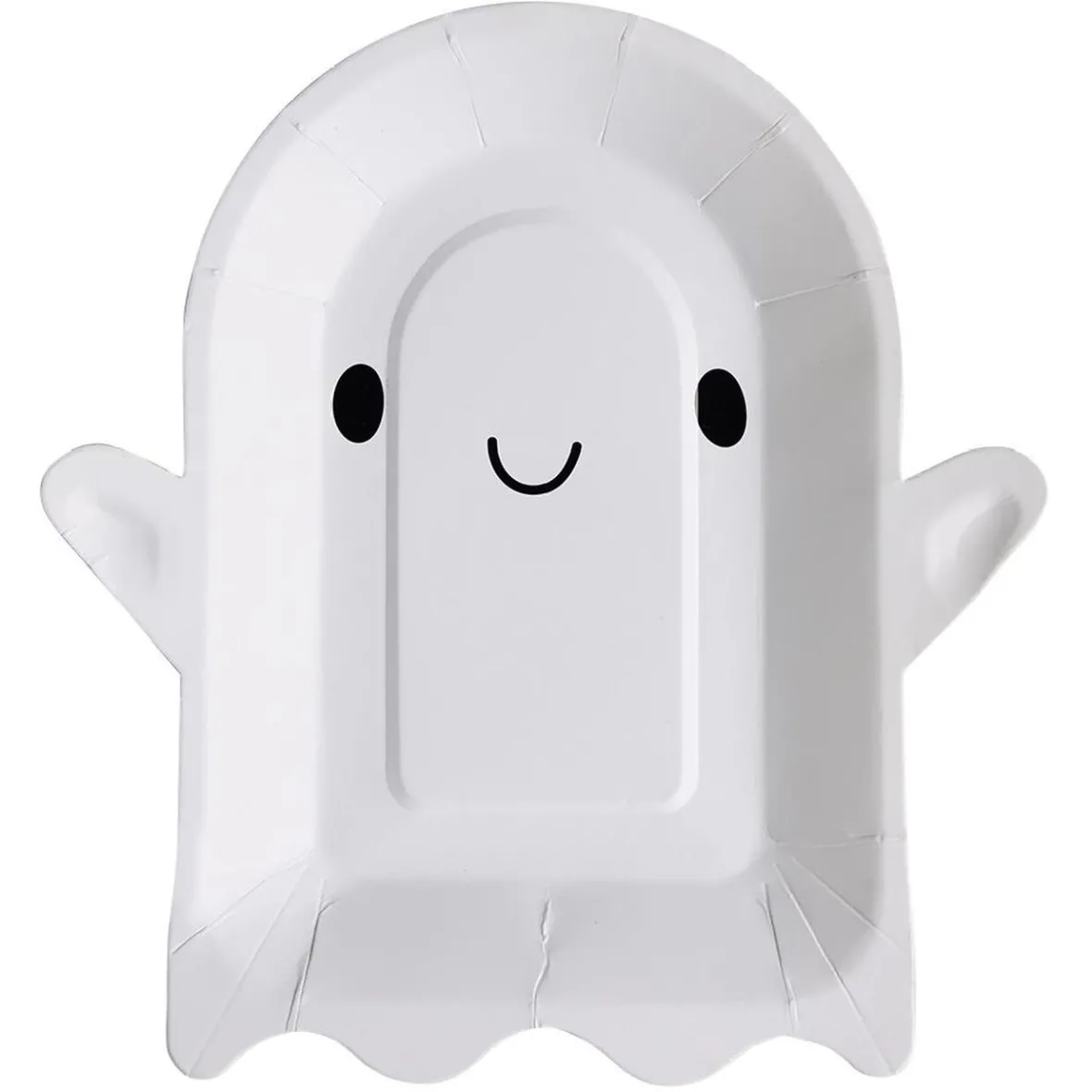 Lot de 10 assiettes en carton design fantôme pour décorer votre table d’Halloween.