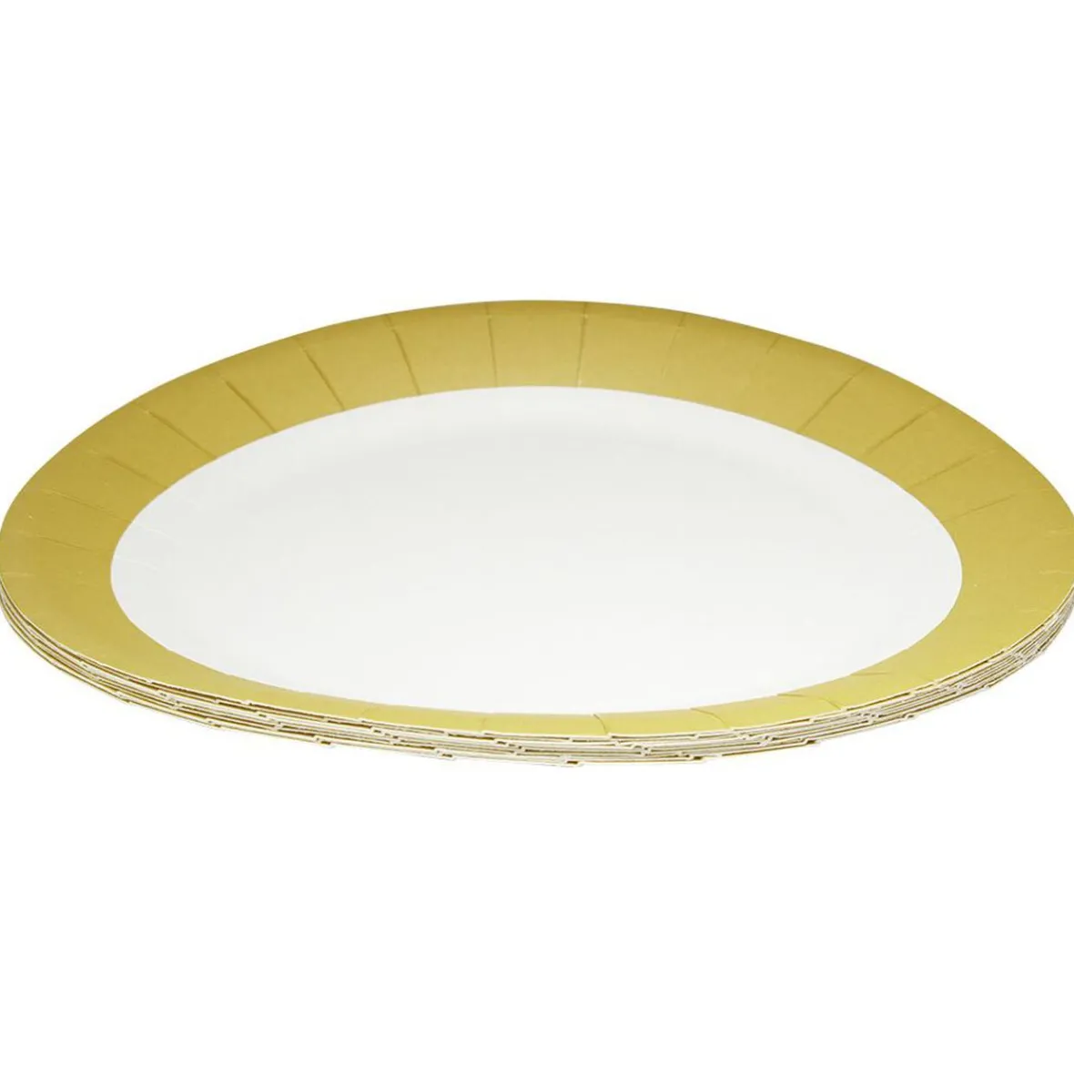 Lot de 10 assiettes rondes en carton blanc à bord doré pour servir vos repas de fête !