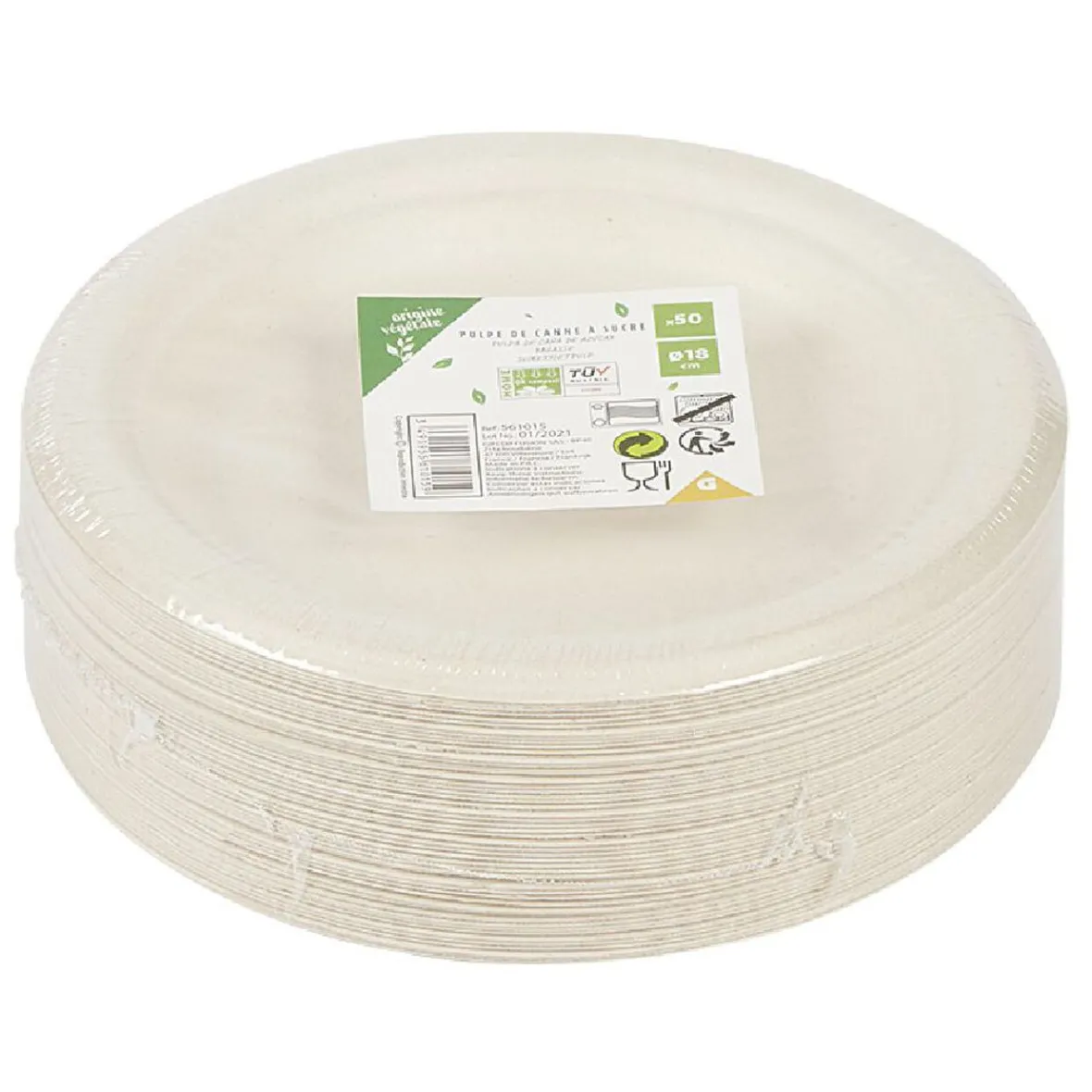 50 assiettes à dessert jetables en canne à sucre non blanchie.