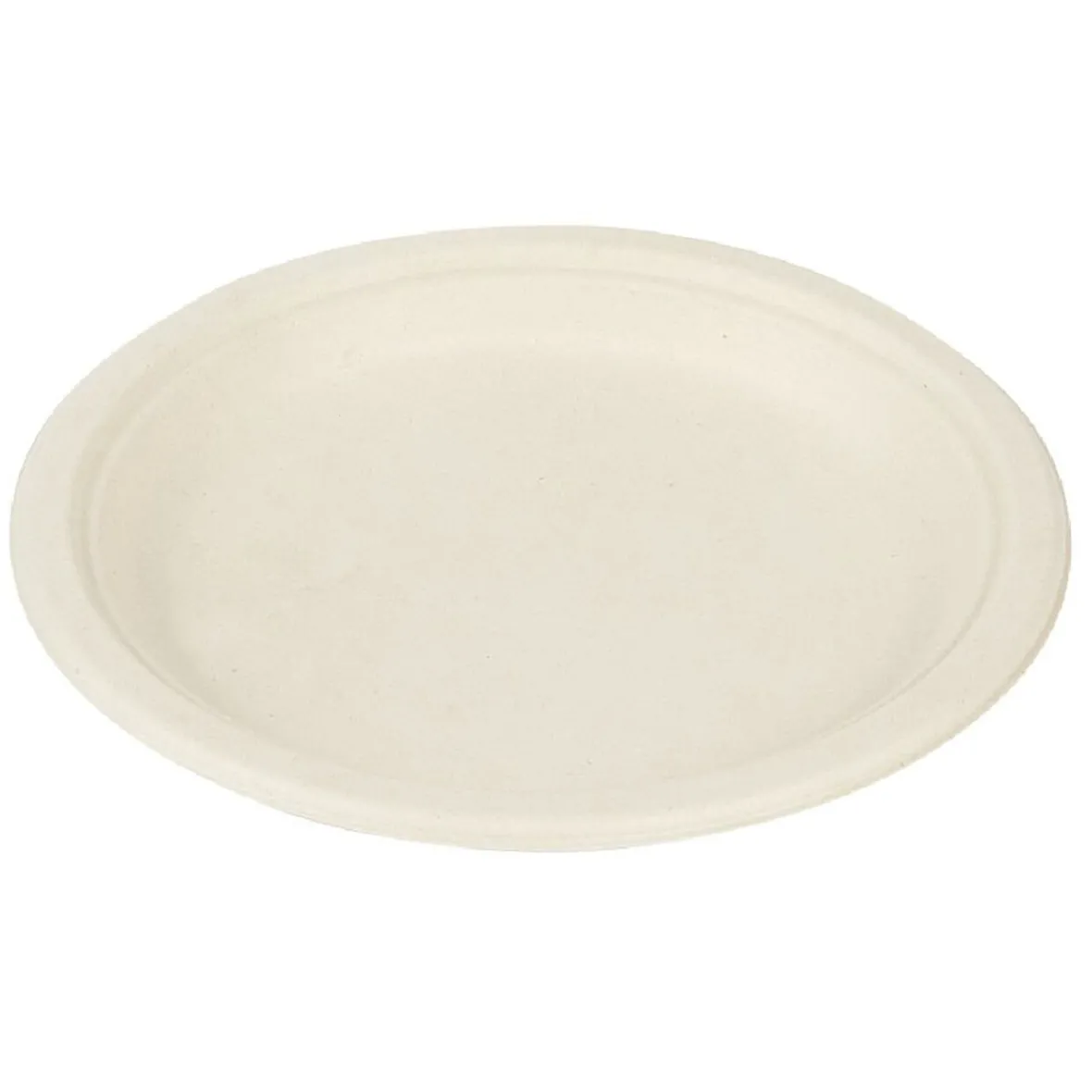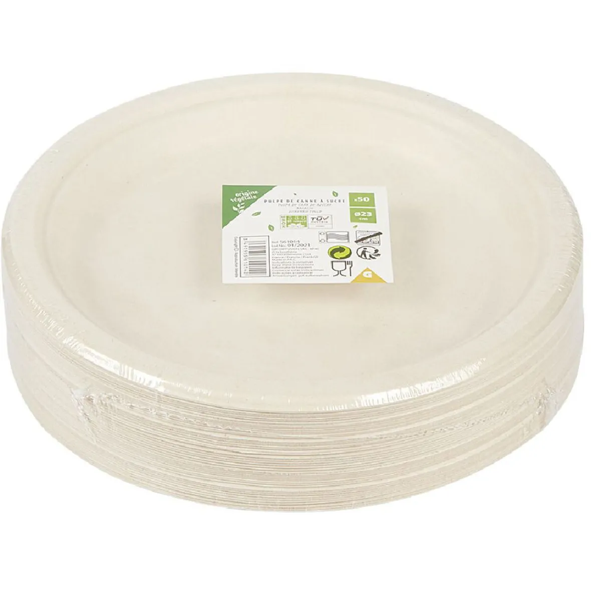 50 assiettes plates jetables en canne à sucre non blanchie.