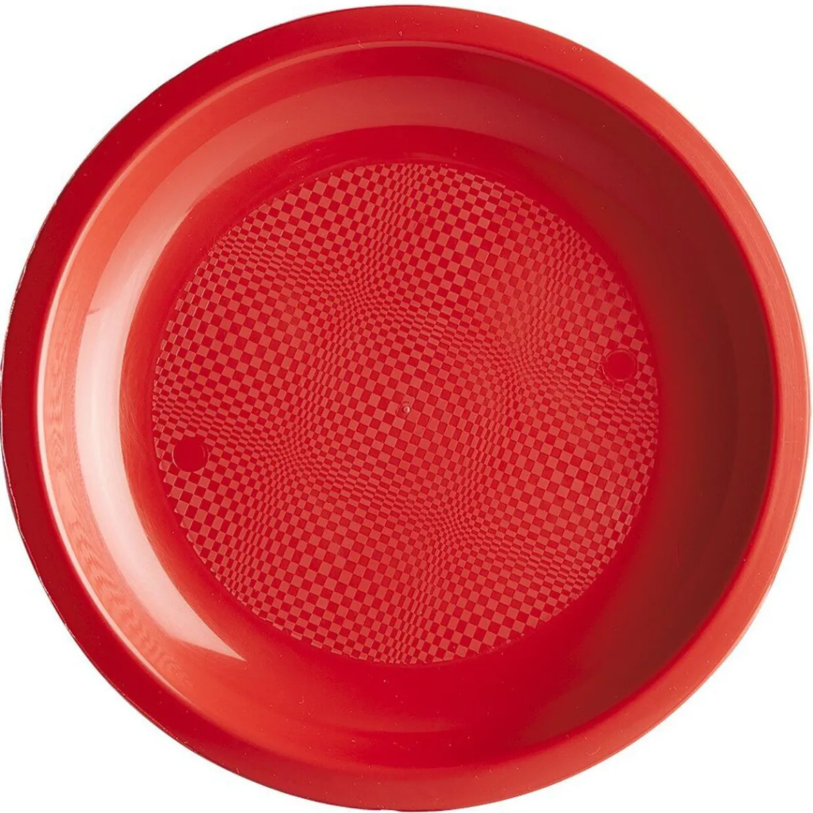 Lot de 6 assiettes en plastique au coloris rouge de 22 cm de diamètre.