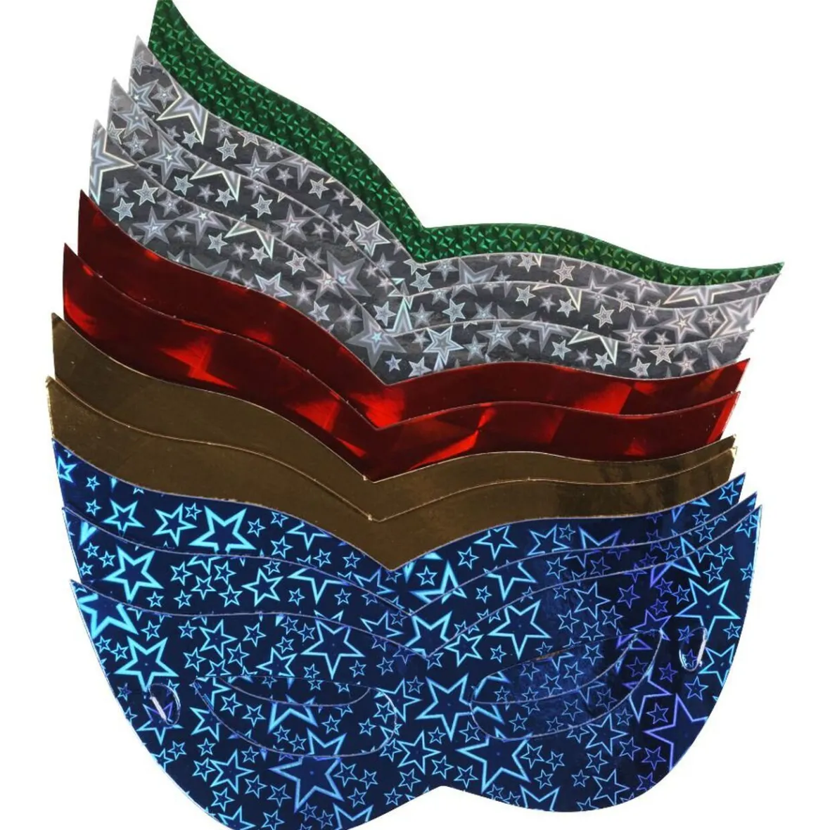 Assortiment de 10 loups de différents coloris et motifs en carton finition métallique.