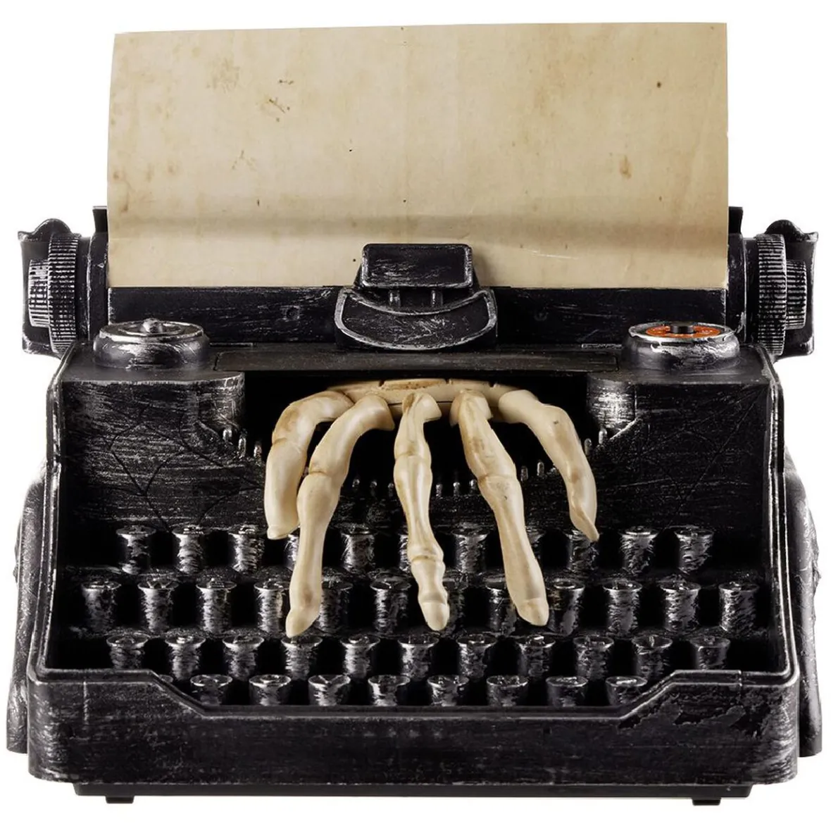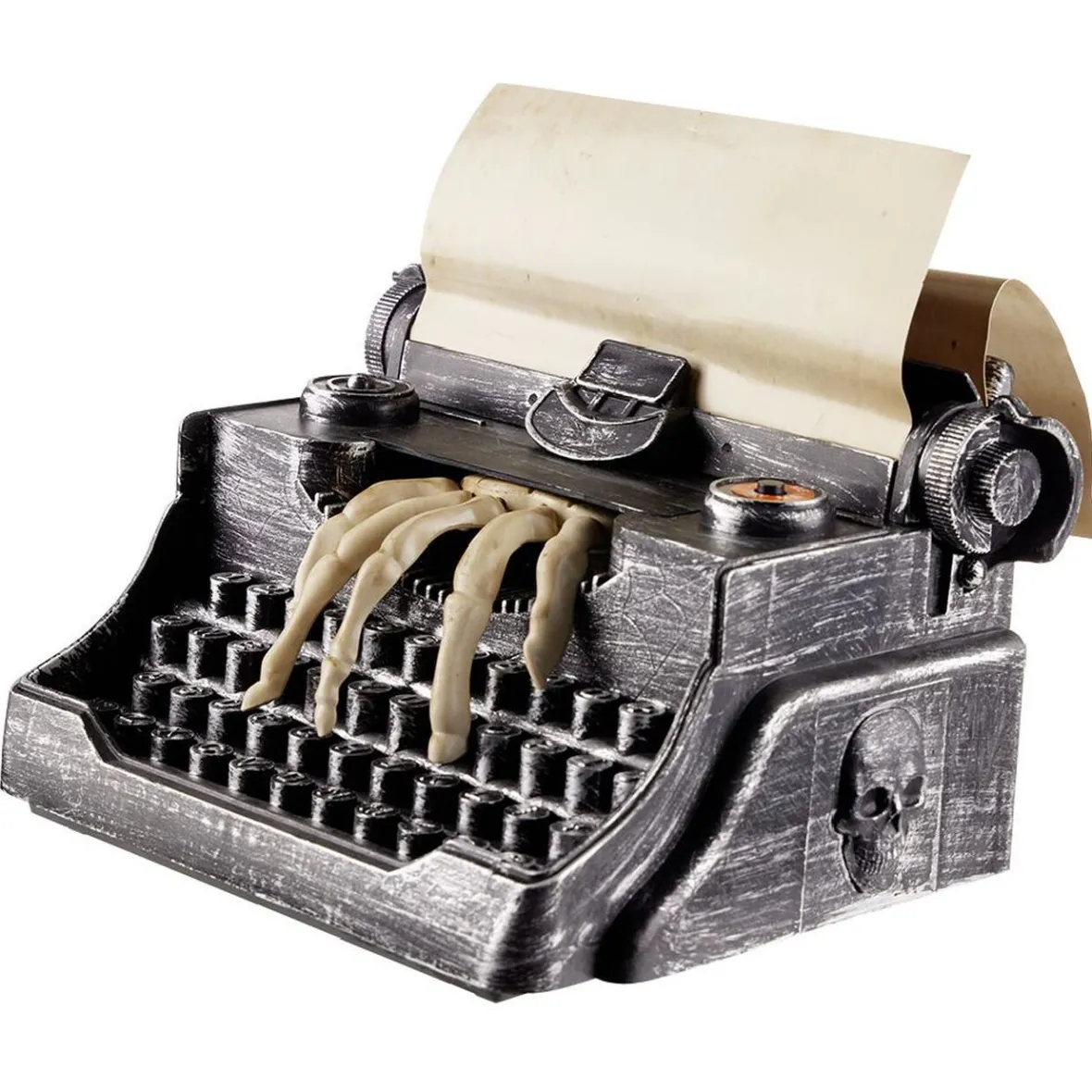 Peaufiner votre décoration d’Halloween avec cette machine à écrire lumineuse animée où une main de squelette sort pour faire semblant d’écrire.