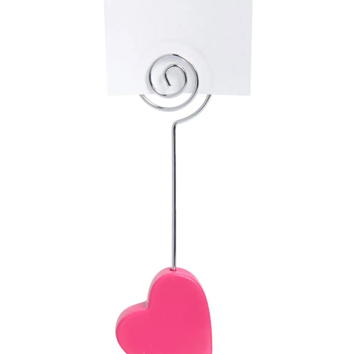 Marque place mariage en forme de coeur rose fuchsia, dim. h.13×4 cm, résine et métal.