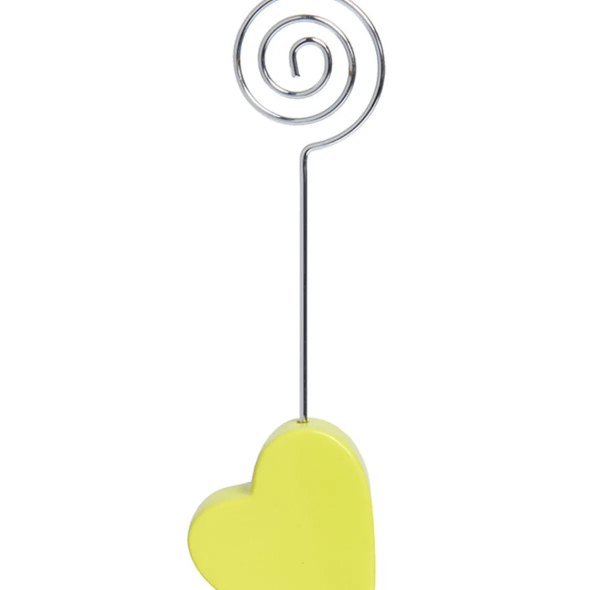 Marque place mariage en forme de coeur vert anis, dim. h.13×4 cm, résine et métal.