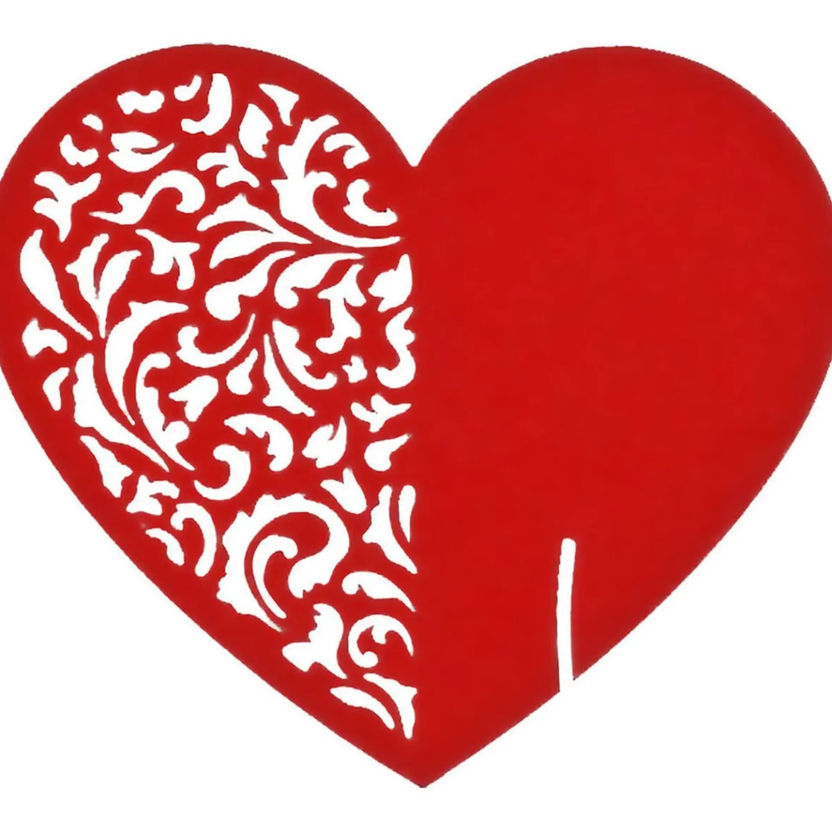 Lot de 6 marque-places en forme de coeur rouge.