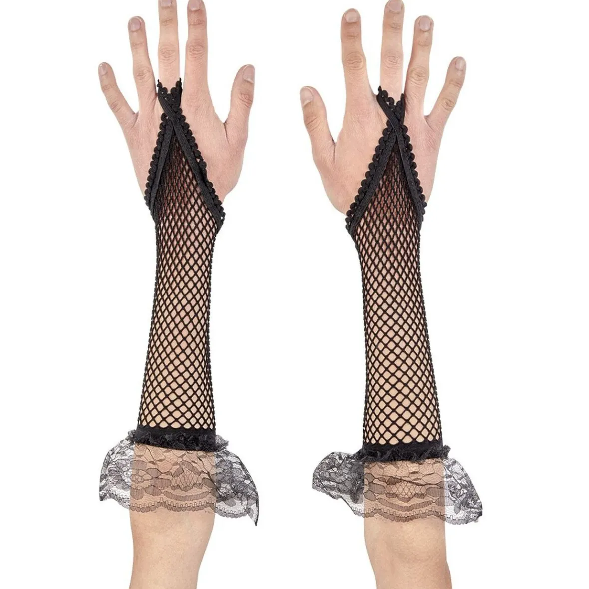 Pour être gothique jusqu’au bout des doigts, habillez vos mains de ces mitaines noires en résille avec voile en dentelle.