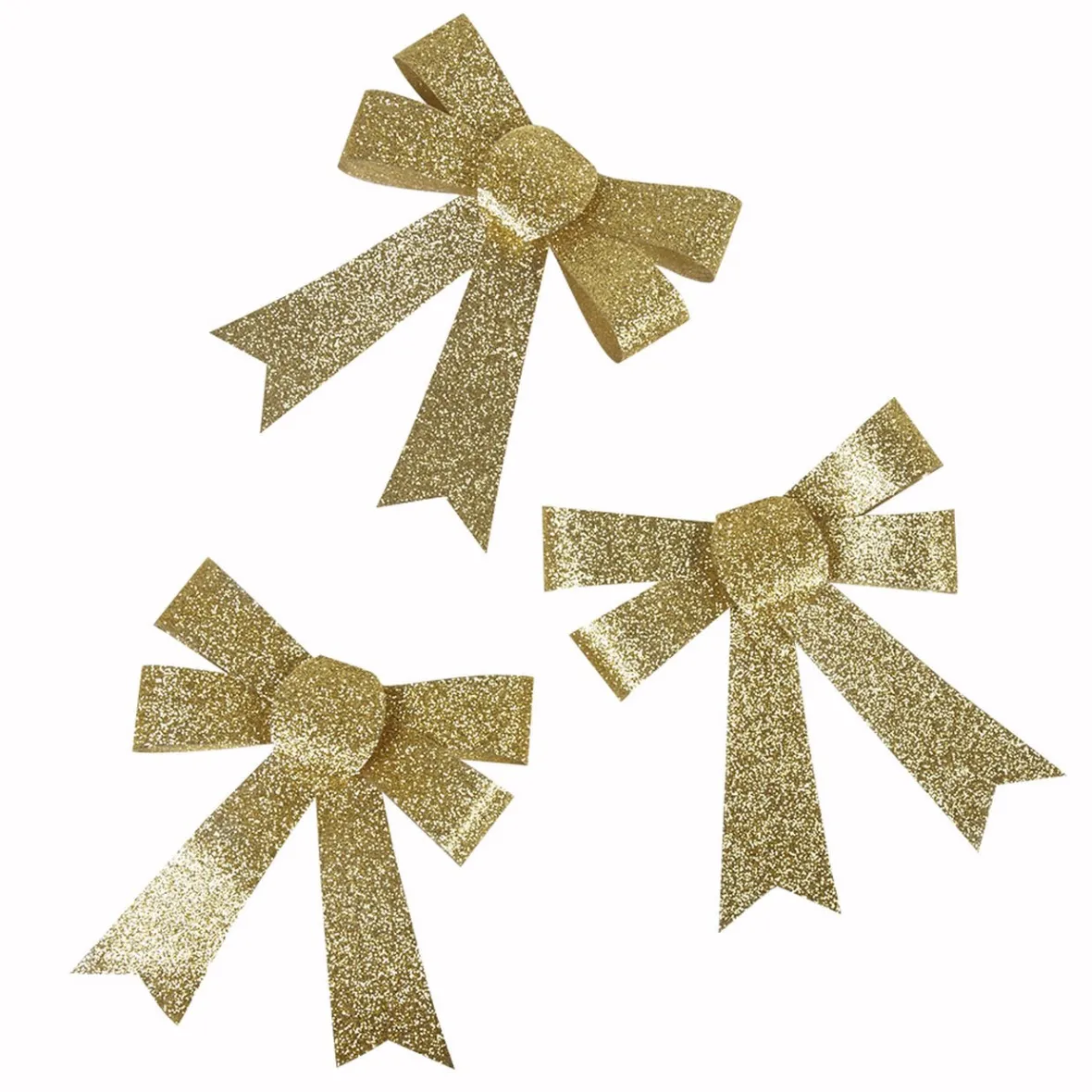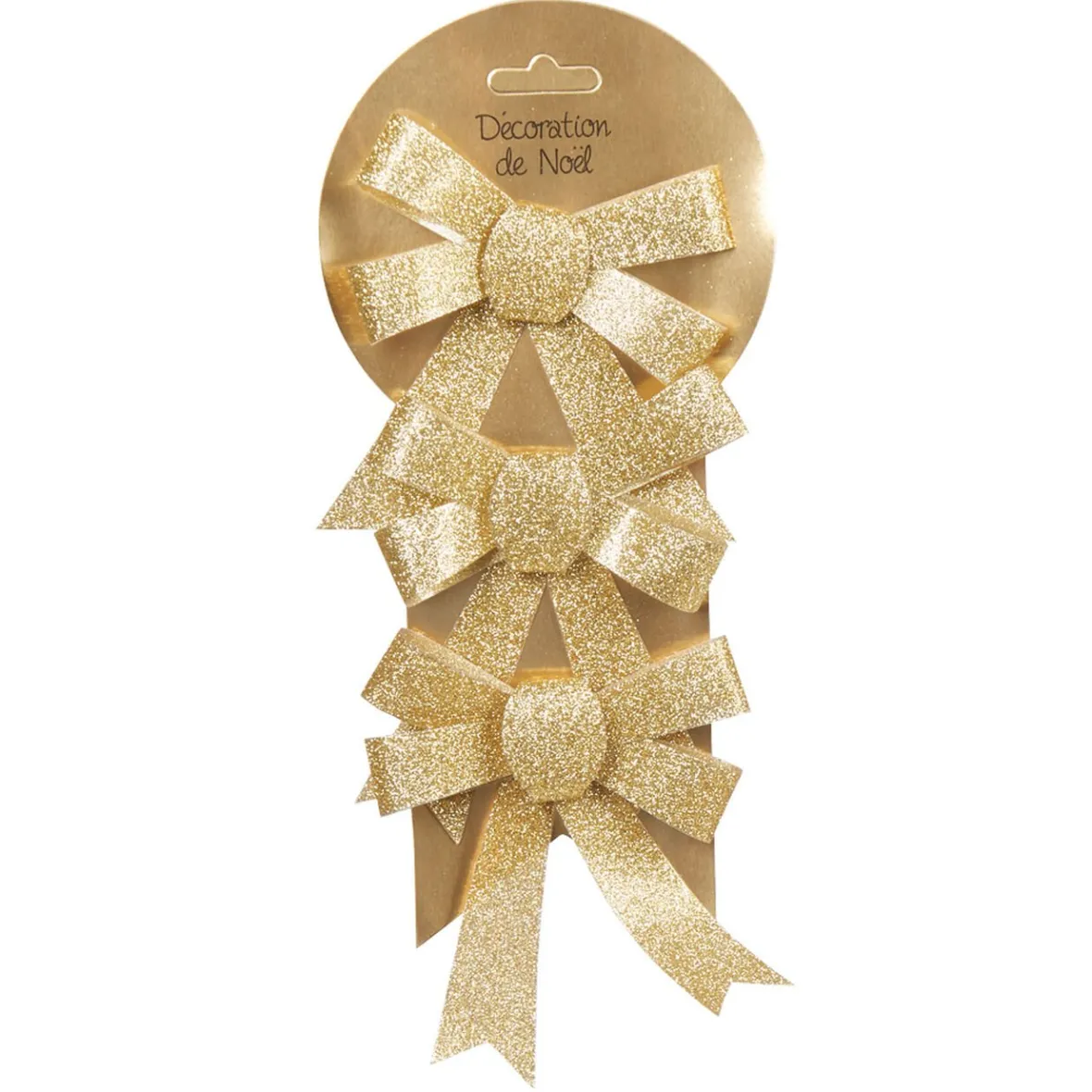 Lot de 3 noeuds dorés à suspendre sur votre sapin de Noël pour une décoration festive et tout en magie.