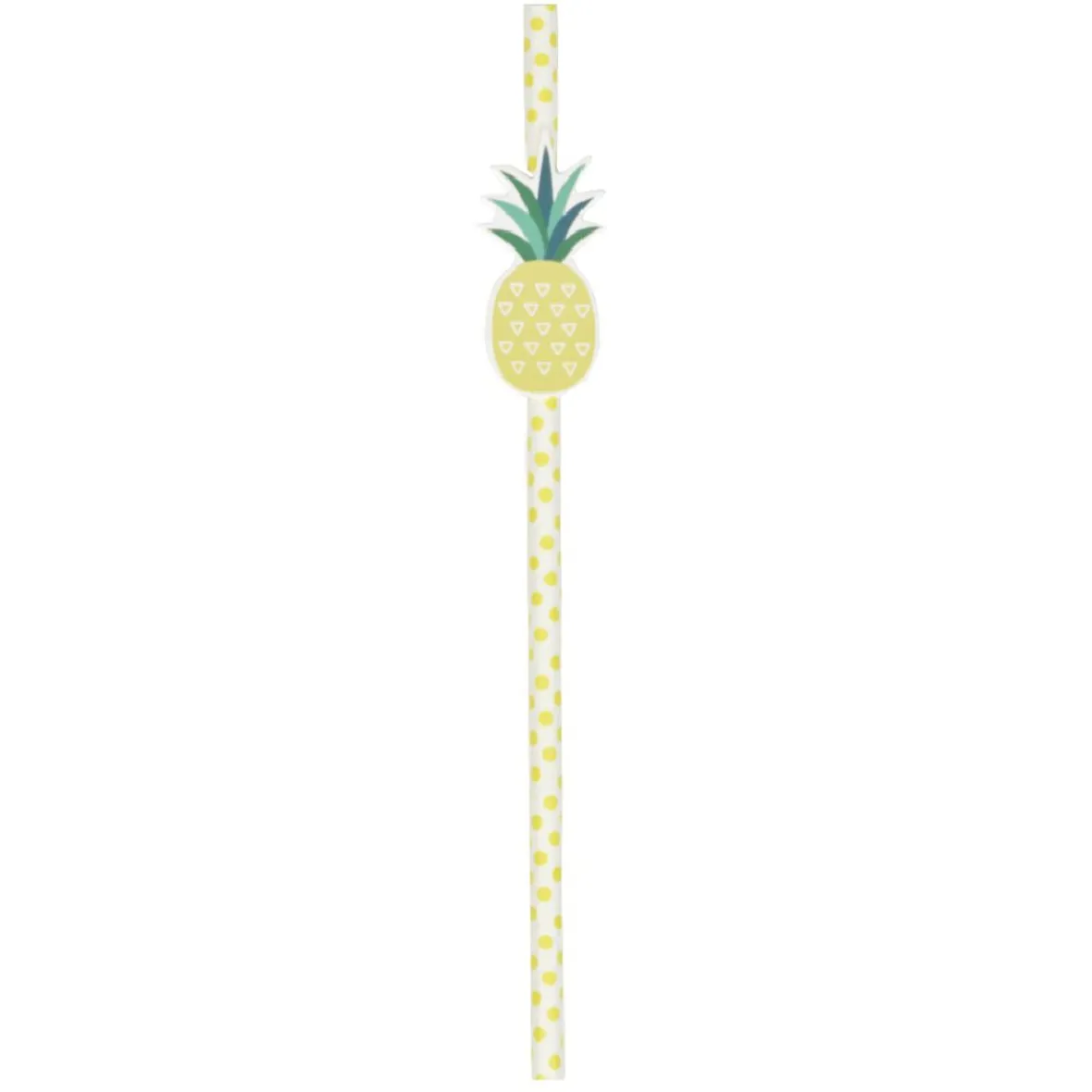 Mettez du fun lors de vos apéritifs avec ce lot de 16 pailles en papier de couleur blanche à pois jaune agrémentées d’un adorable ananas.