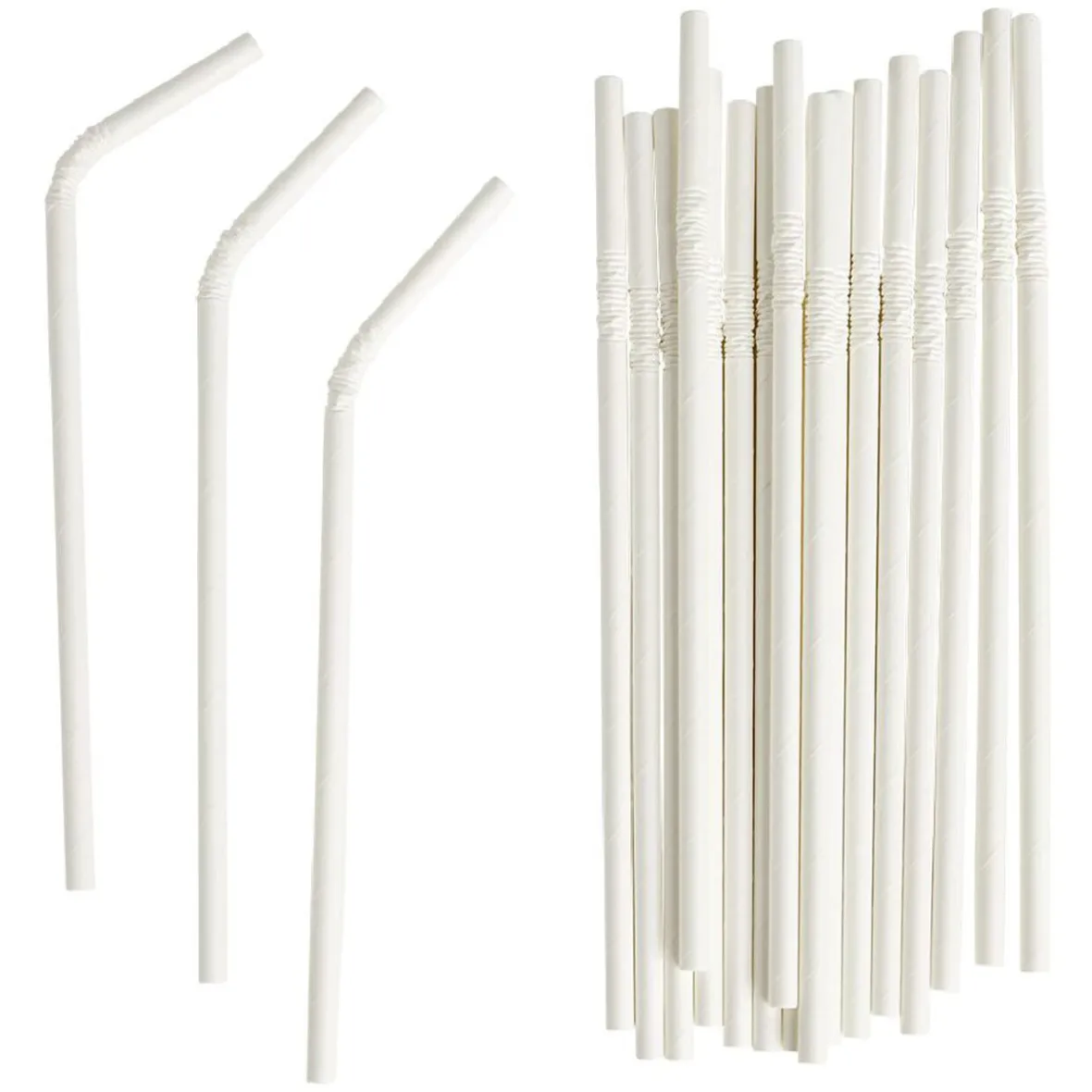 Lot de 20 pailles coudées en papier de couleur blanche, idéal pour apporter un brin de fantaisie aux boissons servies !