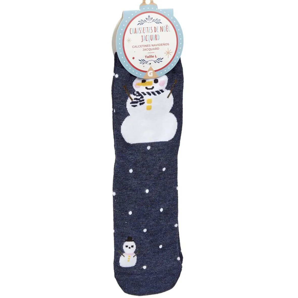 Paire de chaussettes de noël jacquard, taille L, avec motif bonhomme de neige.