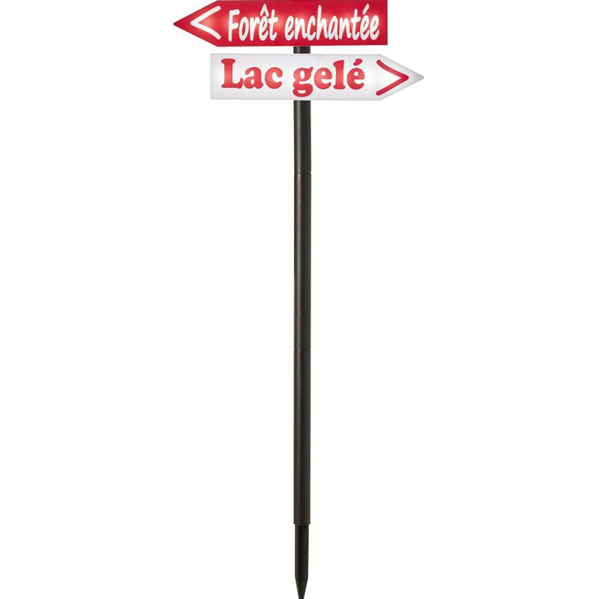Cette pancarte solaire composée de 2 panneaux dont l’un écrit « Lac gelé » et l’autre « Forêt enchantée » est idéale pour agrémenter votre décoration de Noël extérieure.