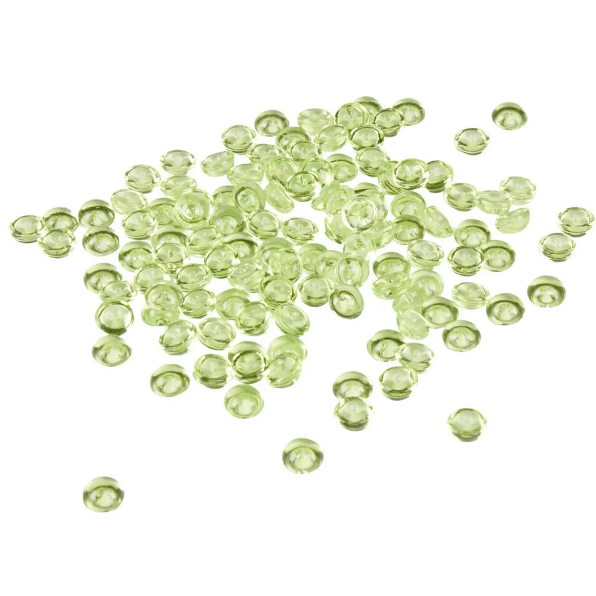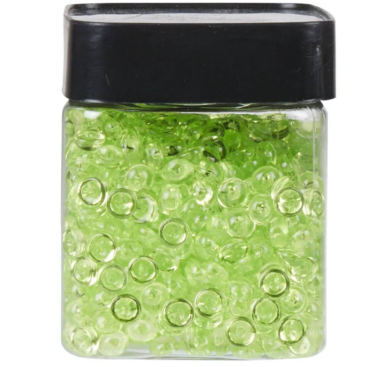 Boîte de perles plates décoratives vertes, cont. 130 gr, ø 0.5 cm environ, plastique.