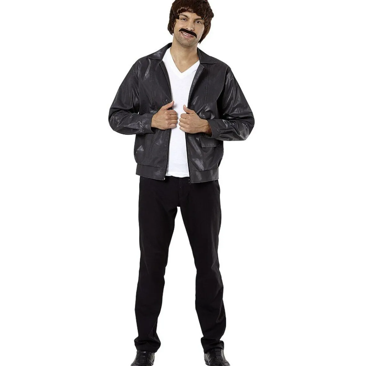 Perruque et moustache marron style années 80 homme.