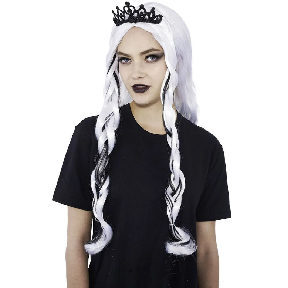Une perruque blanche de princesse pour femme avec couronne. Idéal pour accompagner un costume de princesse.<b
