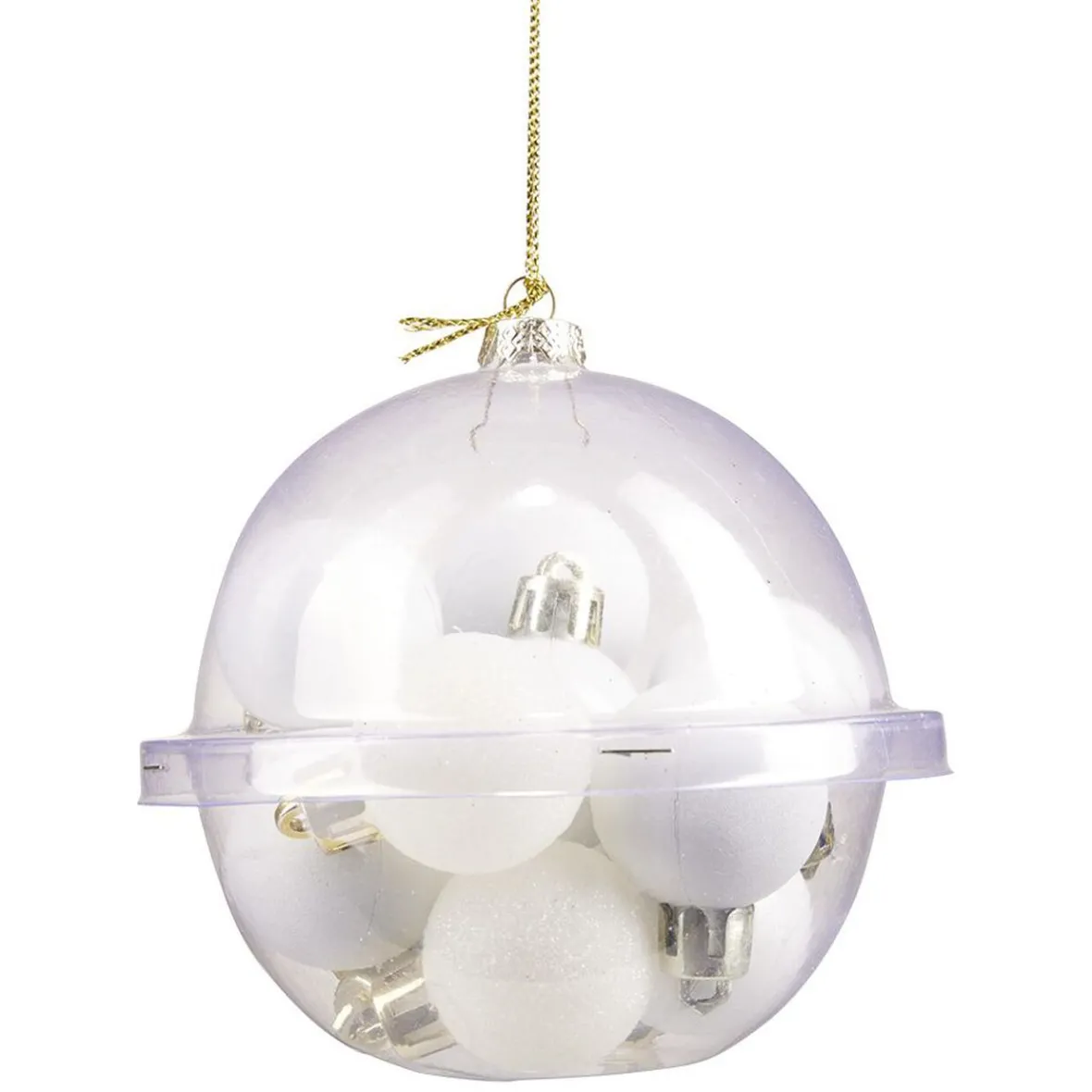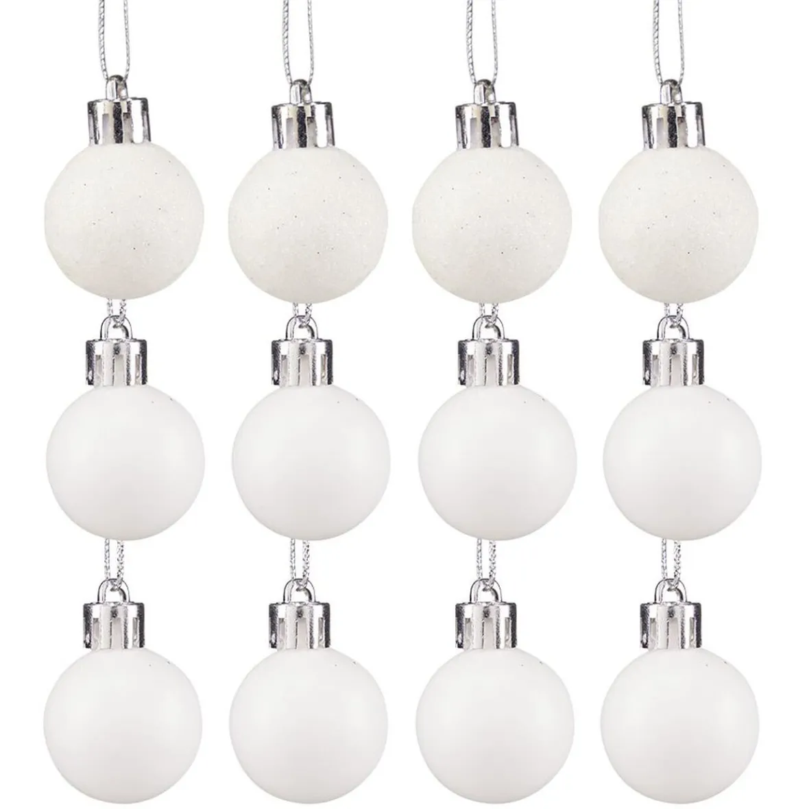 Lot de 12 boules de Noël brillantes, mates et pailletées blancs.