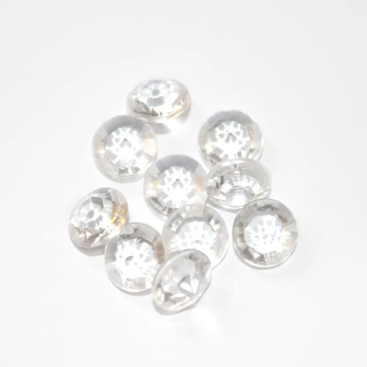 Sachet de 96 pierres décoratives en forme de diamants en plastique transparent.