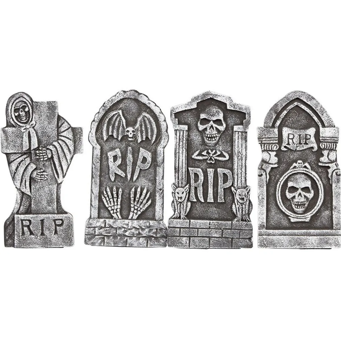 Contient 4 pierres tombales grises RIP à poser où vous le souhaitez.<b