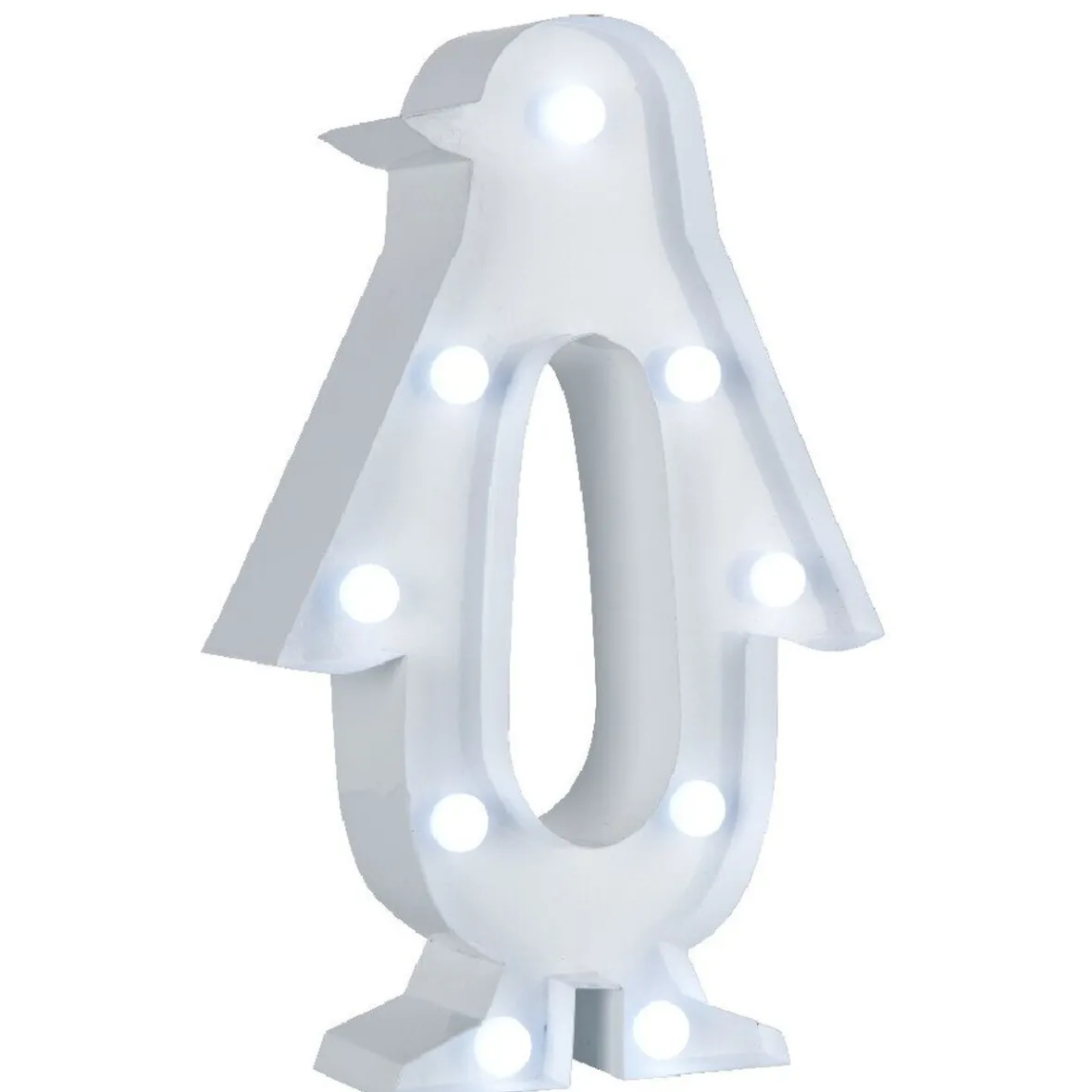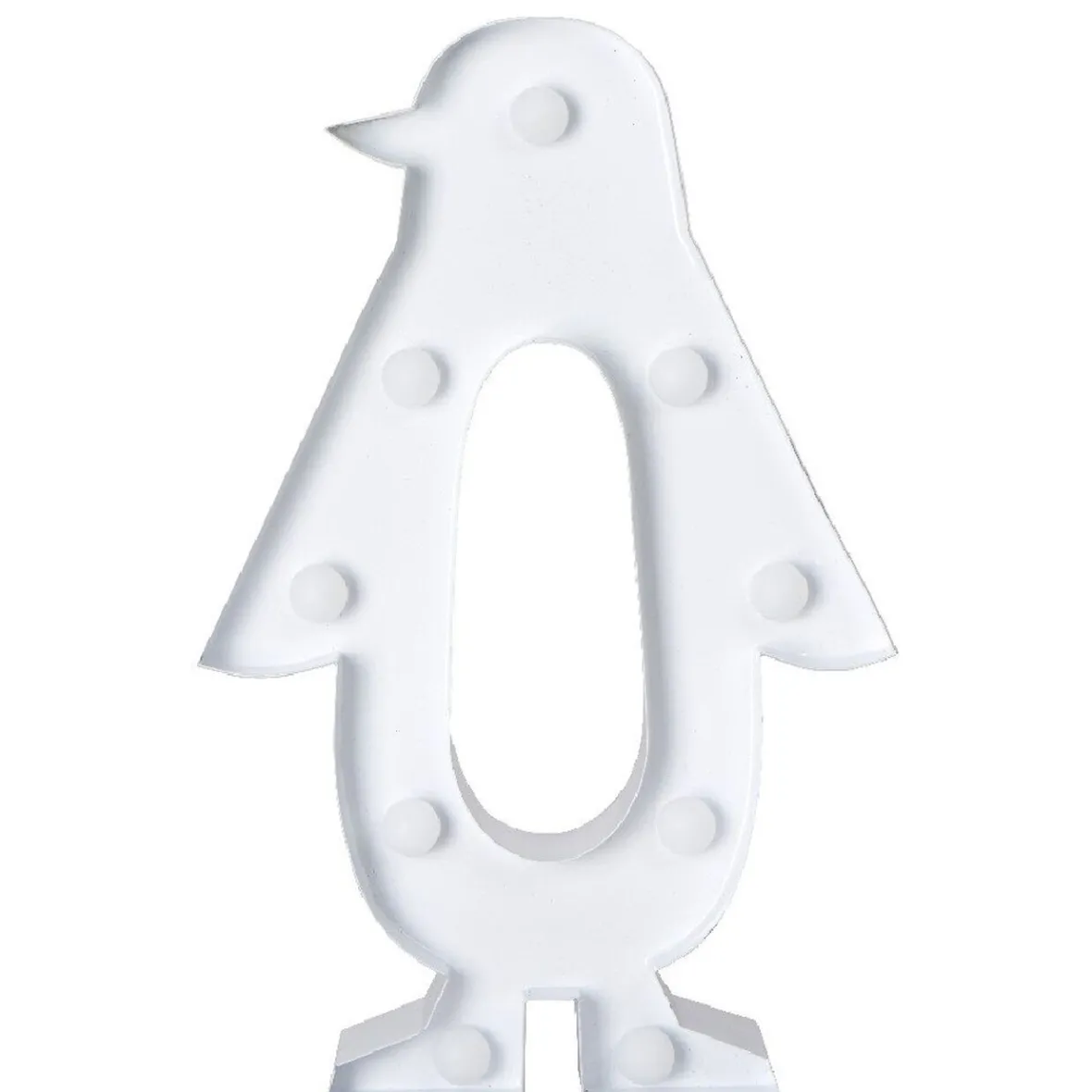 Pingouin blanc lumineux à poser, dim. 17xh.26,5 cm, plastique, bois et métal.