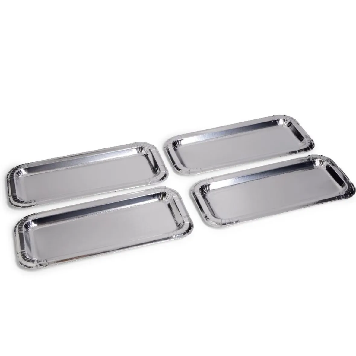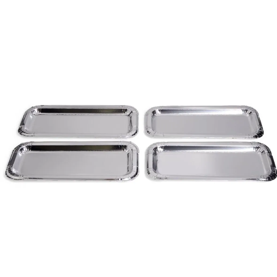 Présentez vos desserts avec élégance grâce à ce lot de 4 plats à cake en carton gris argenté.