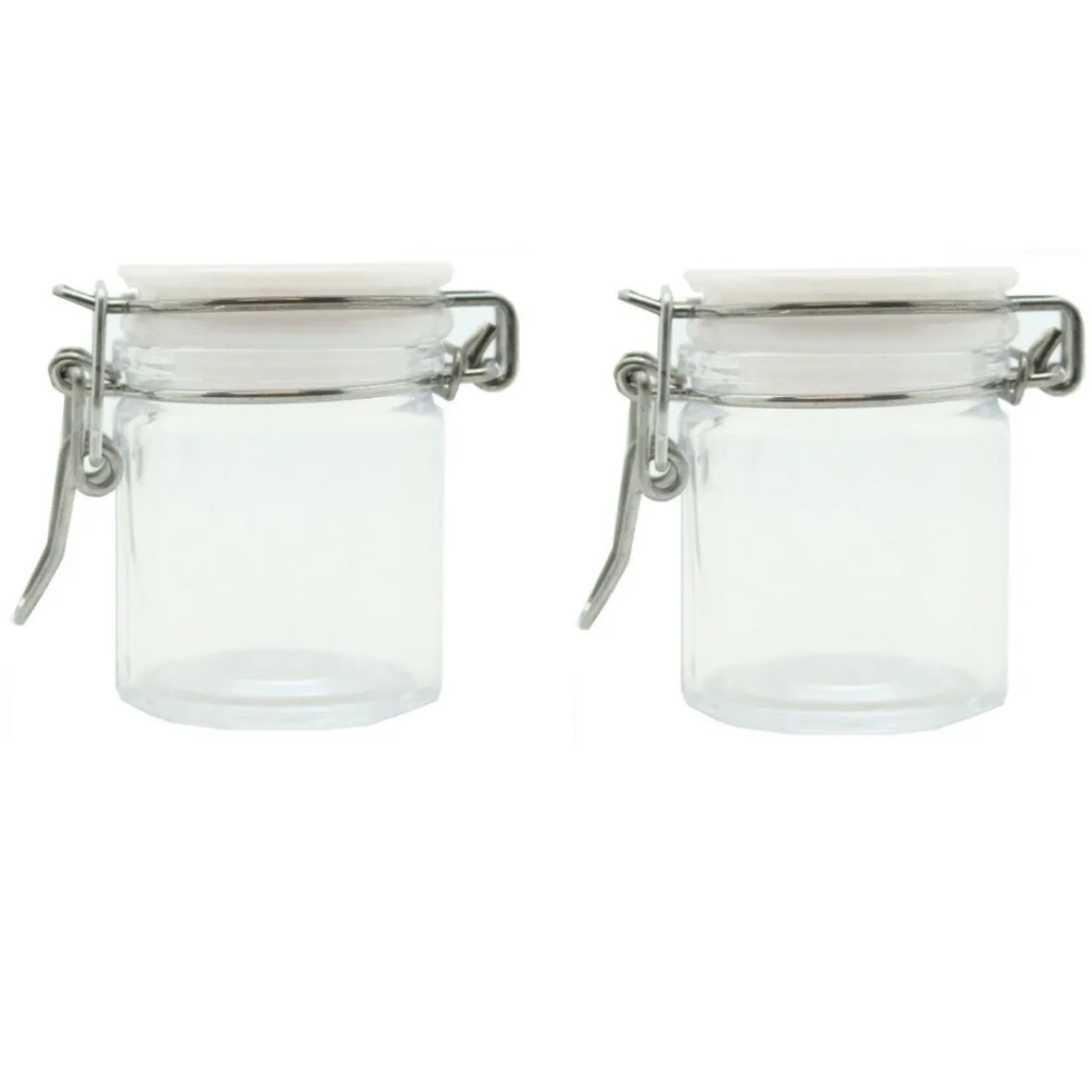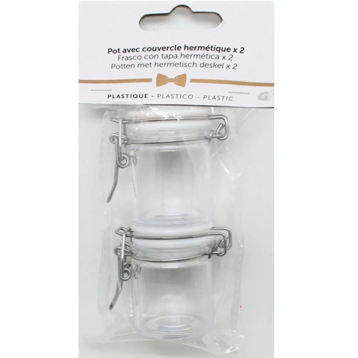 Lot de 2 minis pots en plastique transparent à remplir, avec couvercle hermétique, idéal comme contenant à dragées pour un mariage, baptême ou autre évènement.