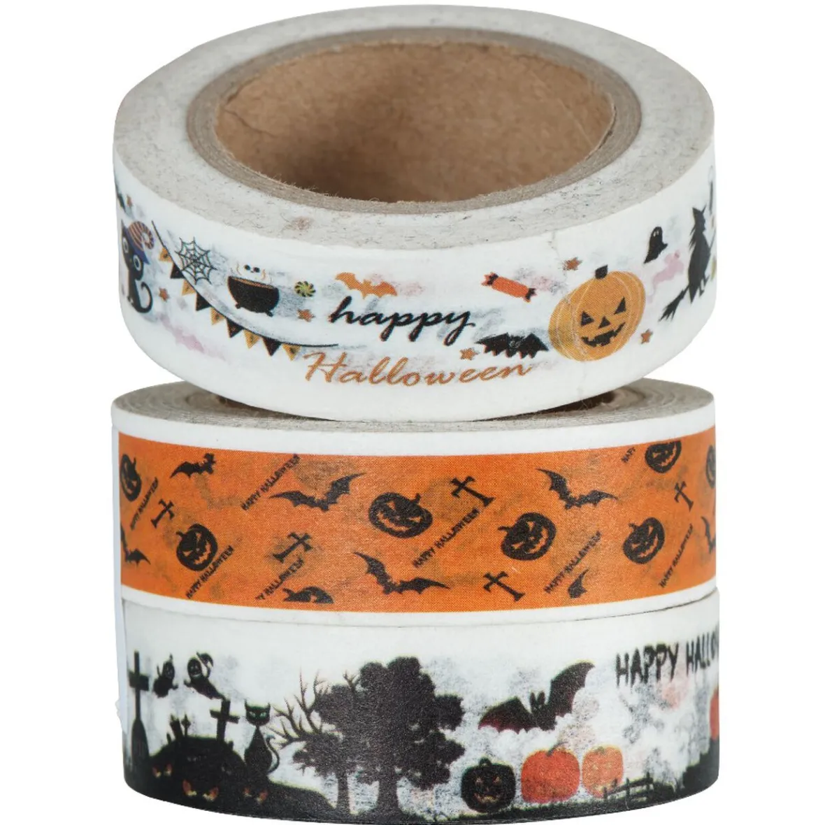 Set de 3 rouleaux washi tape à motif Halloween d’une longueur de 3 m.