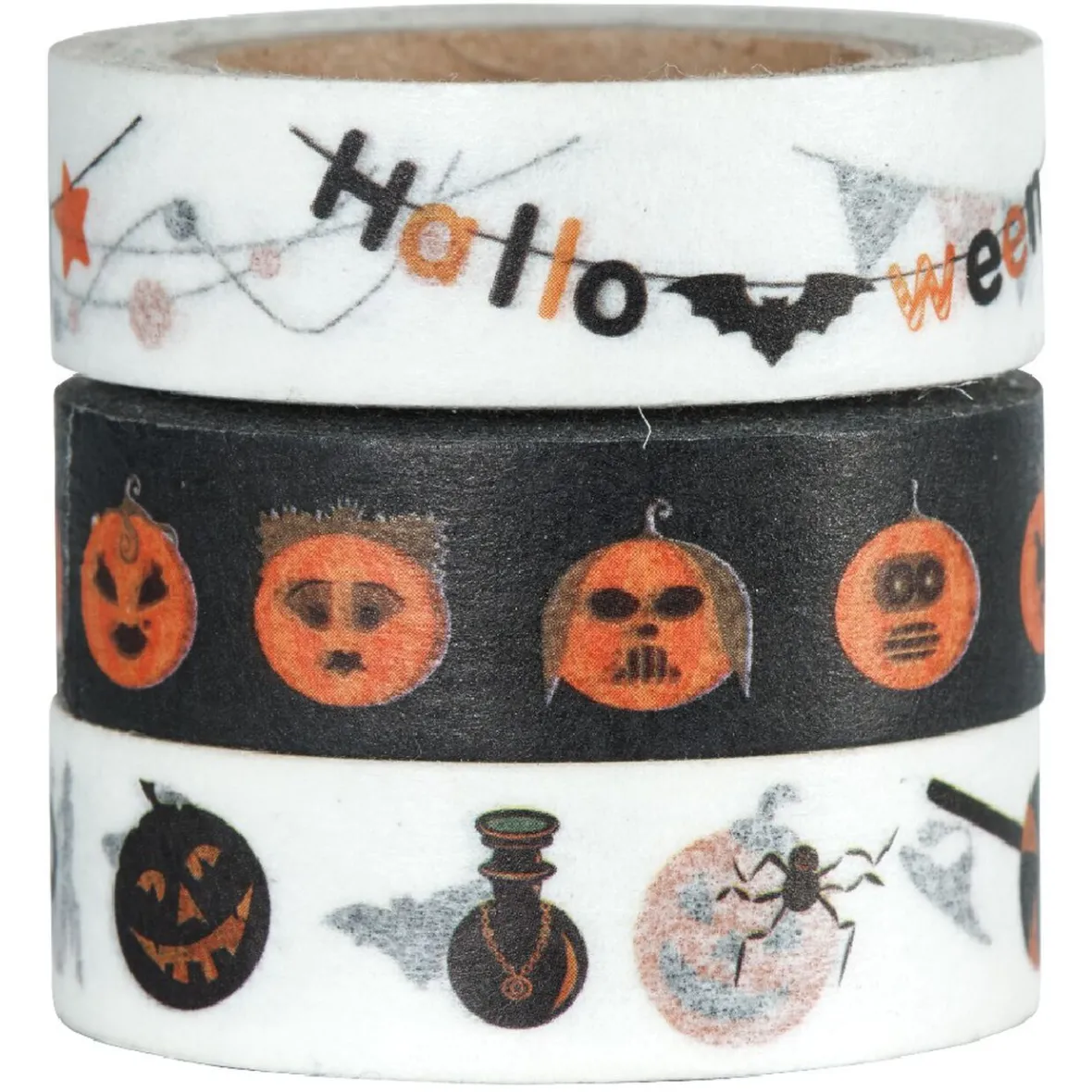 Set de 3 rouleaux washi tape à motif Halloween d’une longueur de 3 m.