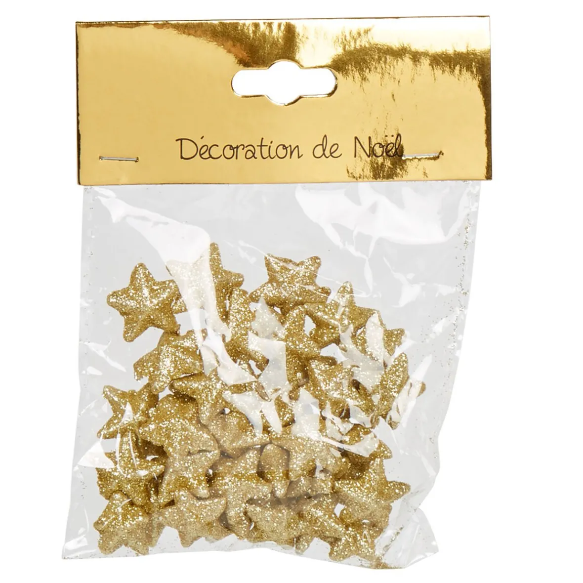 Sachet comprenant une quarantaine de minis étoiles dorées pailletées.
