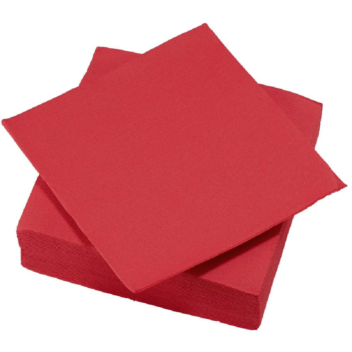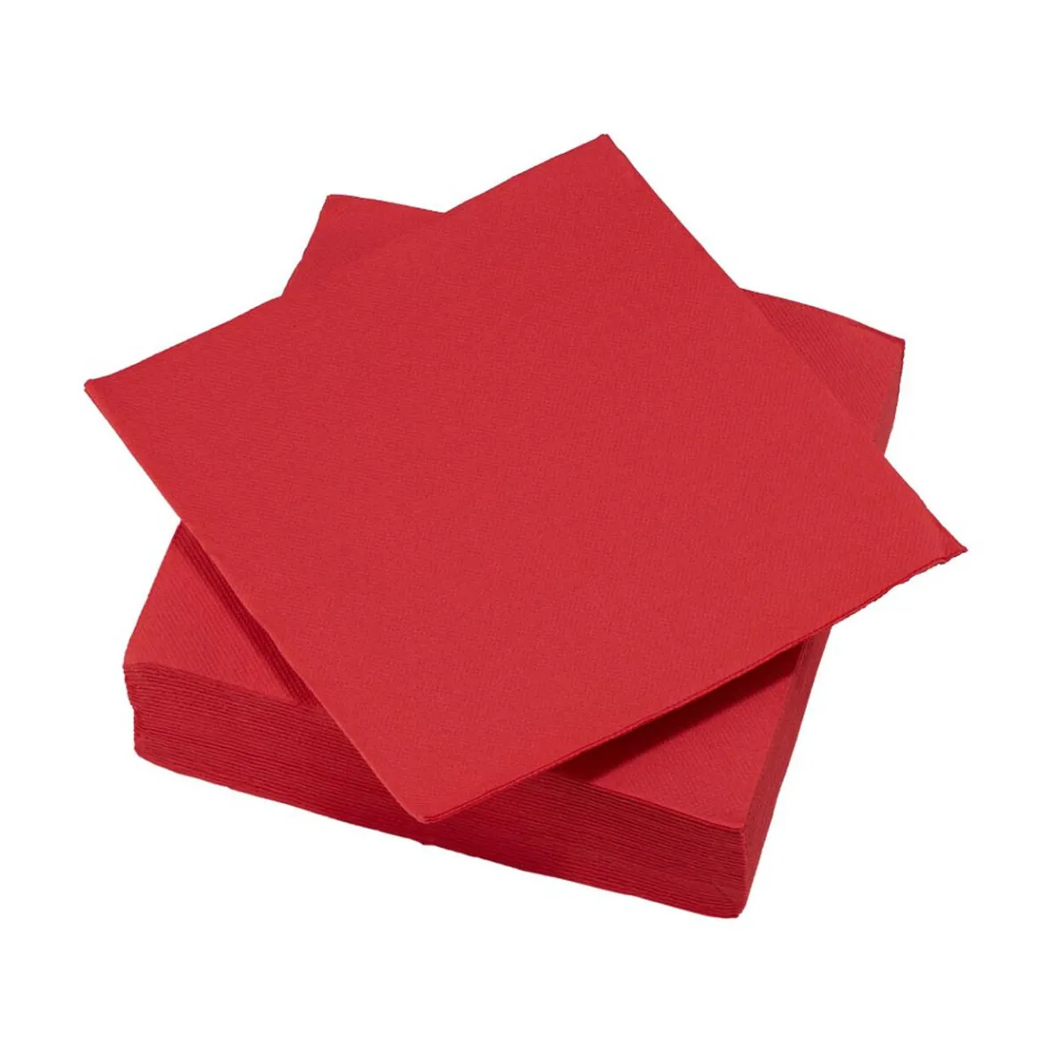 Donnez un peu de couleur à votre table avec ce lot de 40 serviettes carrées en papier rouge 2 plis.