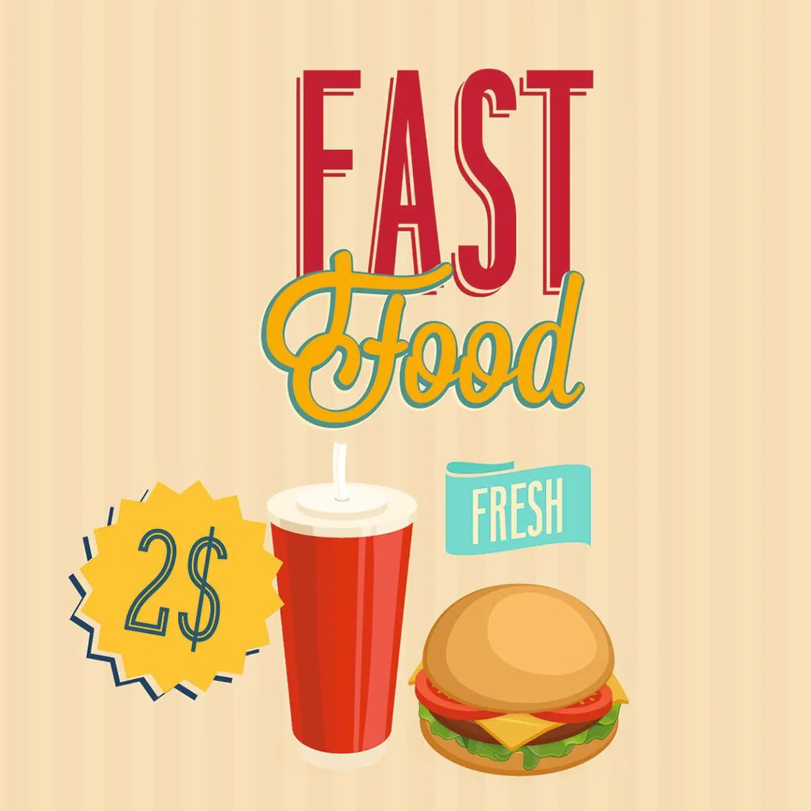 Lot de 20 serviettes jetables en papier 3 plis à motif fast food.