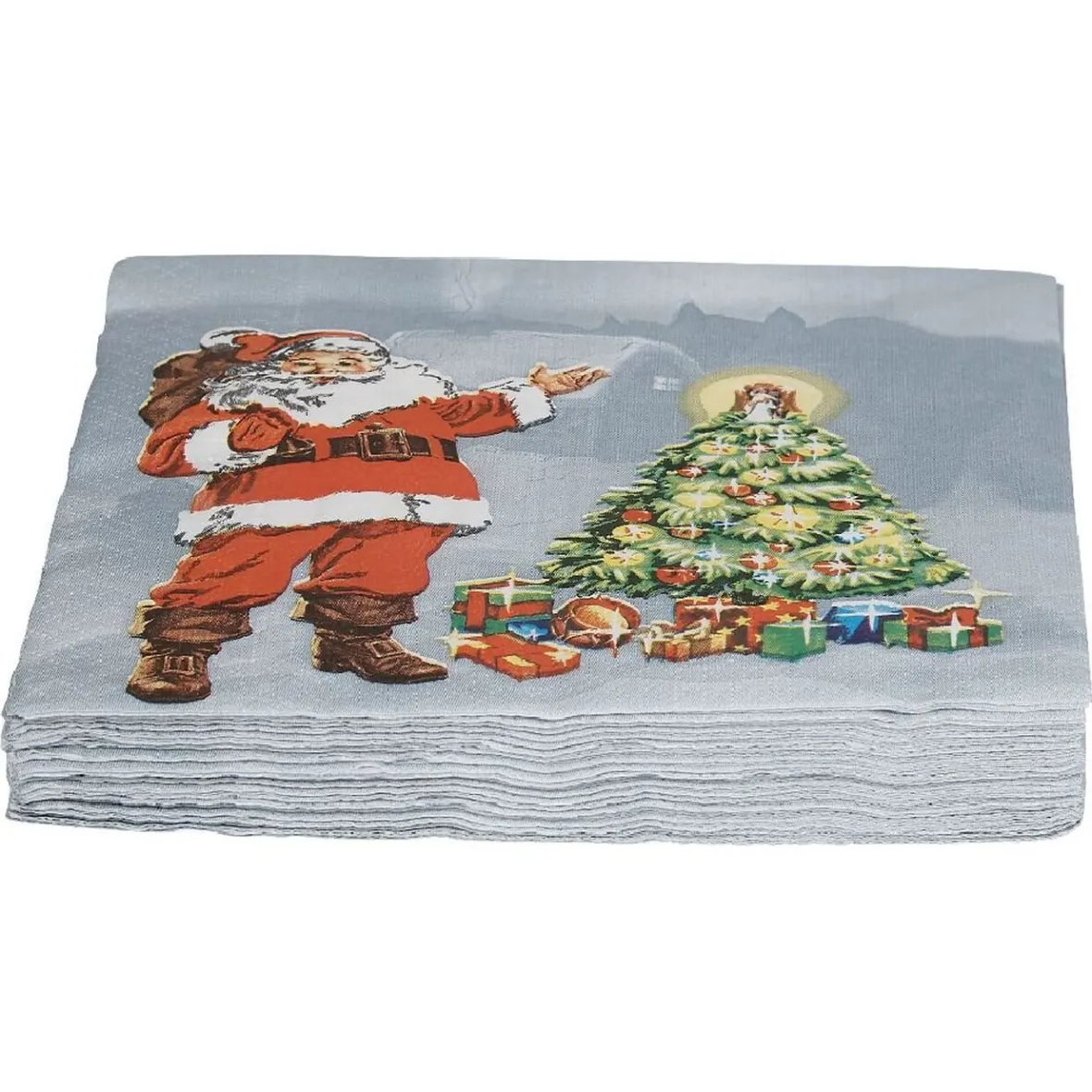 Lot de 20 serviettes en papier imprimées Sapin décoré et Père Noël.