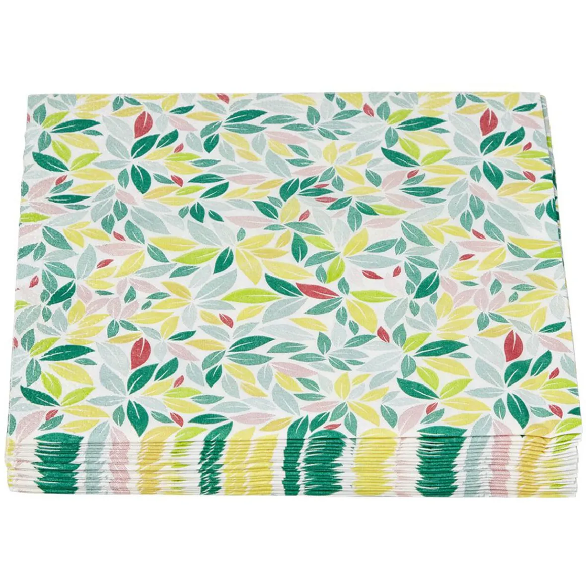 Lot de 20 serviettes en ouate imprimé feuillage multicolore pour des repas et goûters à l’ambiance estivale et festive!