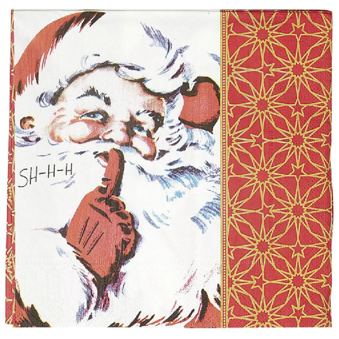 Lot de 50 serviettes en papier imprimé Père Noël rouge et doré.