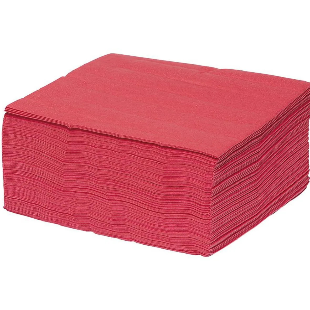 Lot de 100 serviettes 2 plis en papier ouate rouge.
