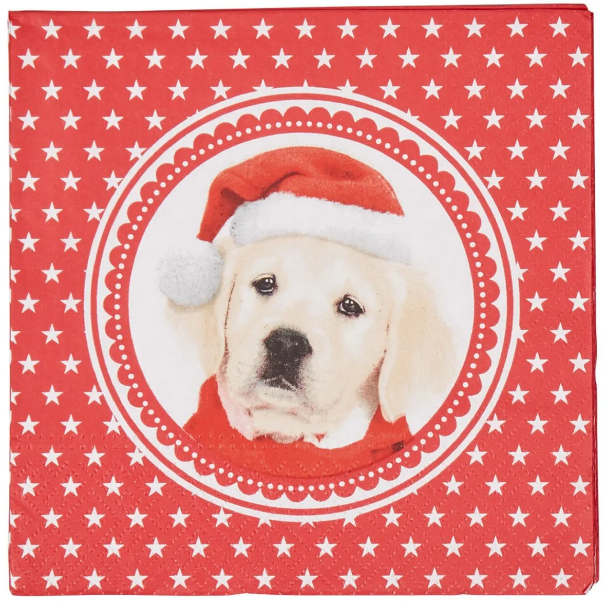 Lot de 20 serviettes jetables rouges imprimées chien de Noël, idéal pour agrémenter la table de fête de vos enfants.