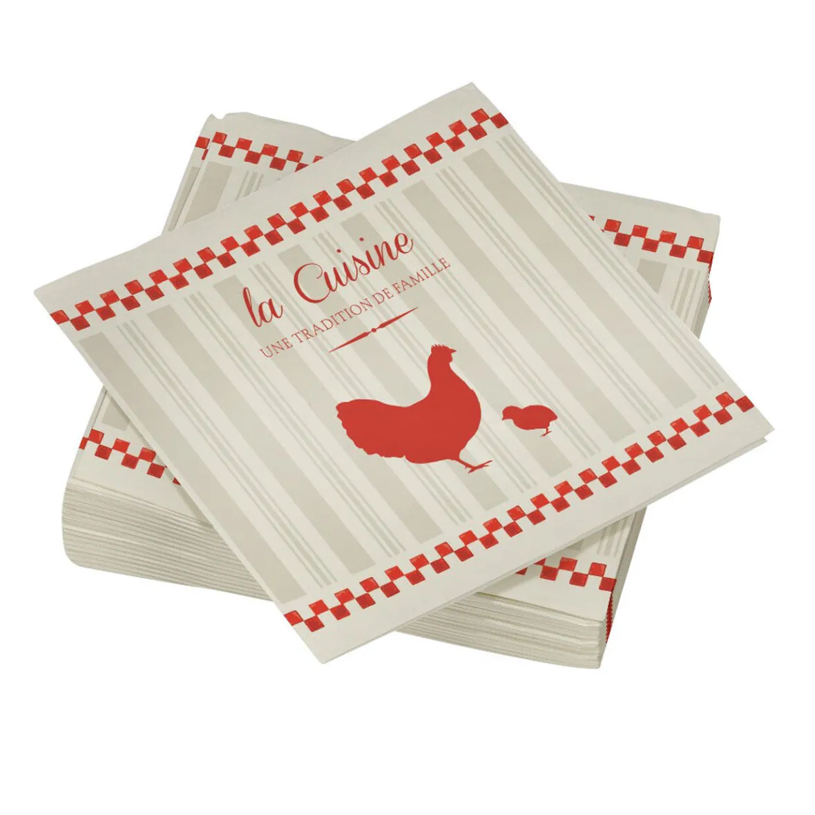 Lot de 50 serviettes en papier au style rétro et au motif Poule et son poussin.
